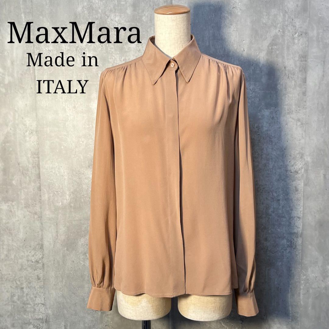 イタリア製☆ MaxMara マックスマーラ シルク100% ギャザーショルダーブラウス 白タグ