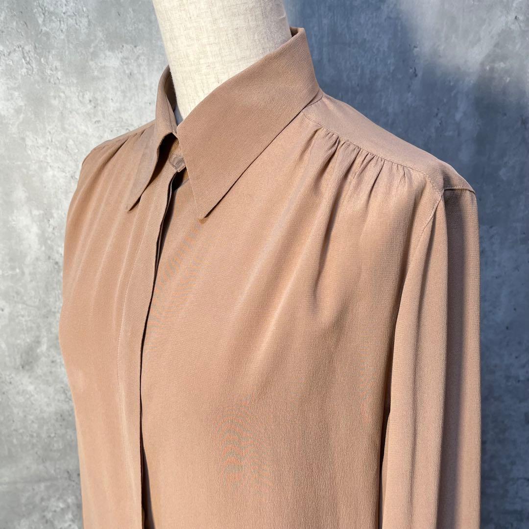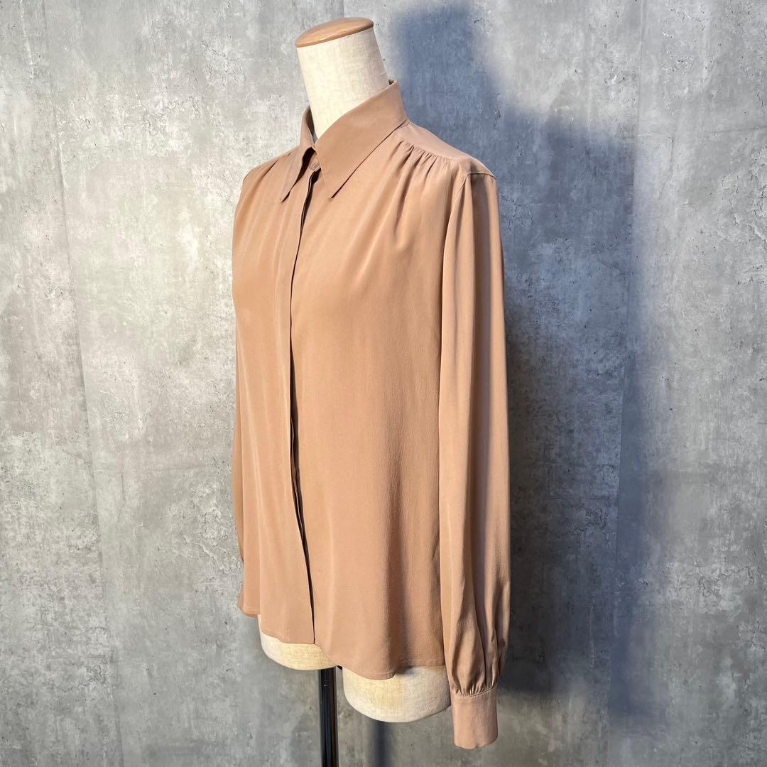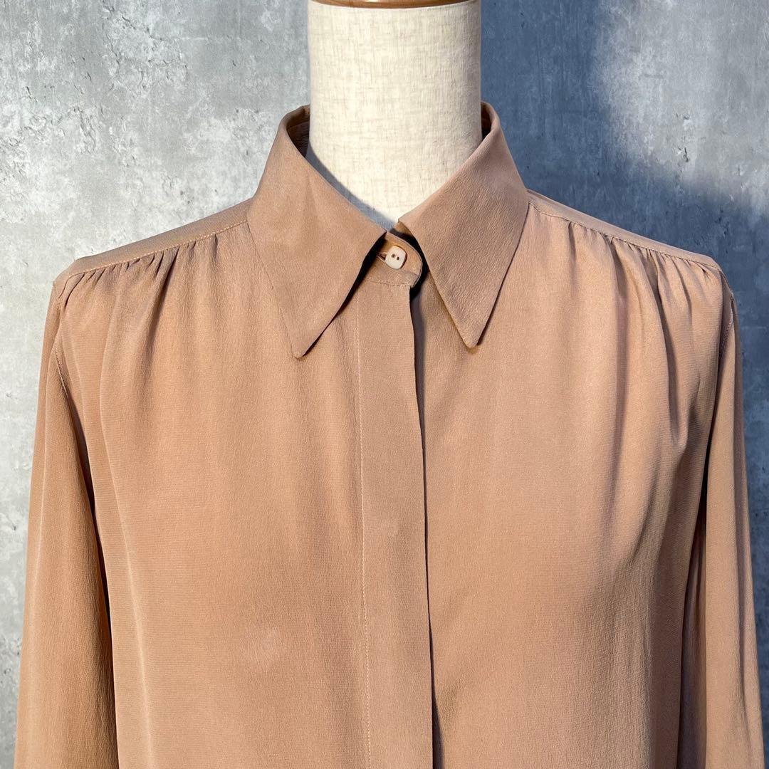 MaxMaraらしい落ち着いた色合いの上品な大人可愛いギャザーデザインブラウス