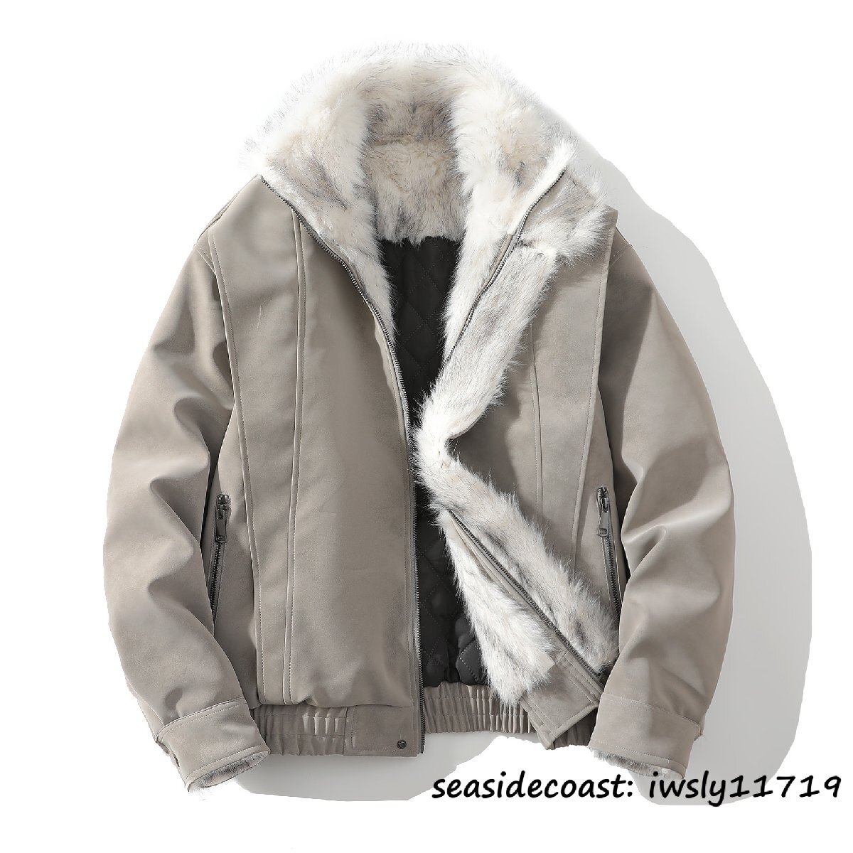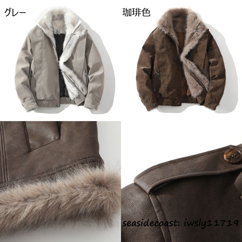 入手困難■ムートンコート メンズ 中綿 ジャケット 保温防寒 抜群暖か ワークウェア ファーコート 毛皮 ブルゾン バイクウエア グレー 4XL