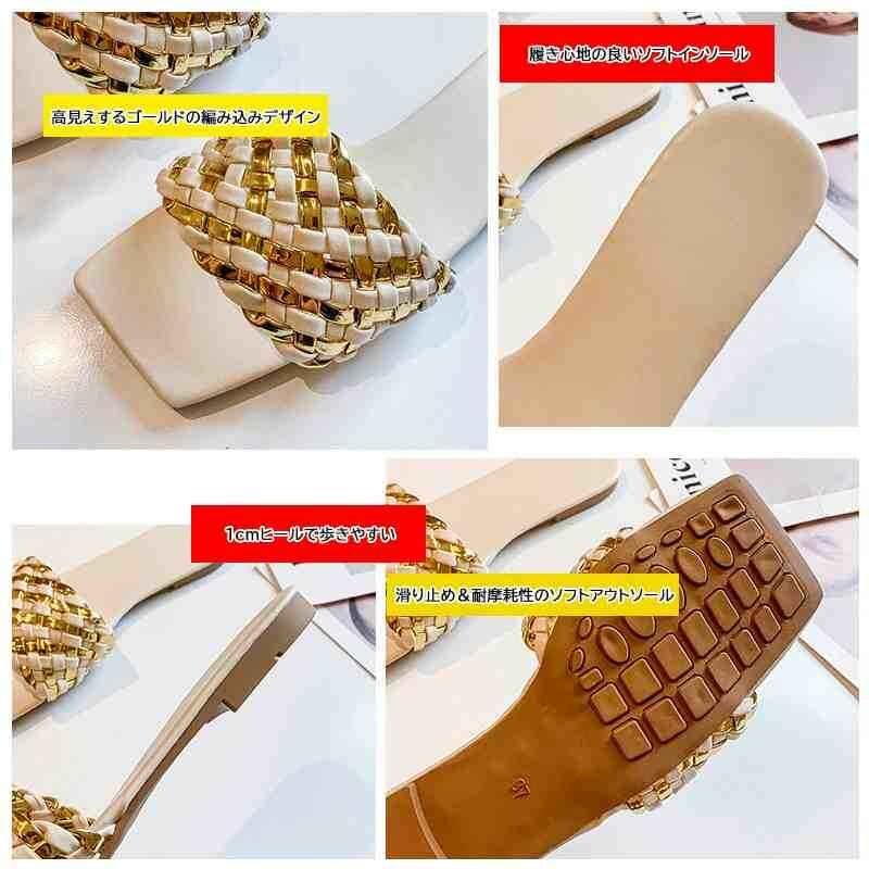 高見えするゴールドの編み込みサンダル