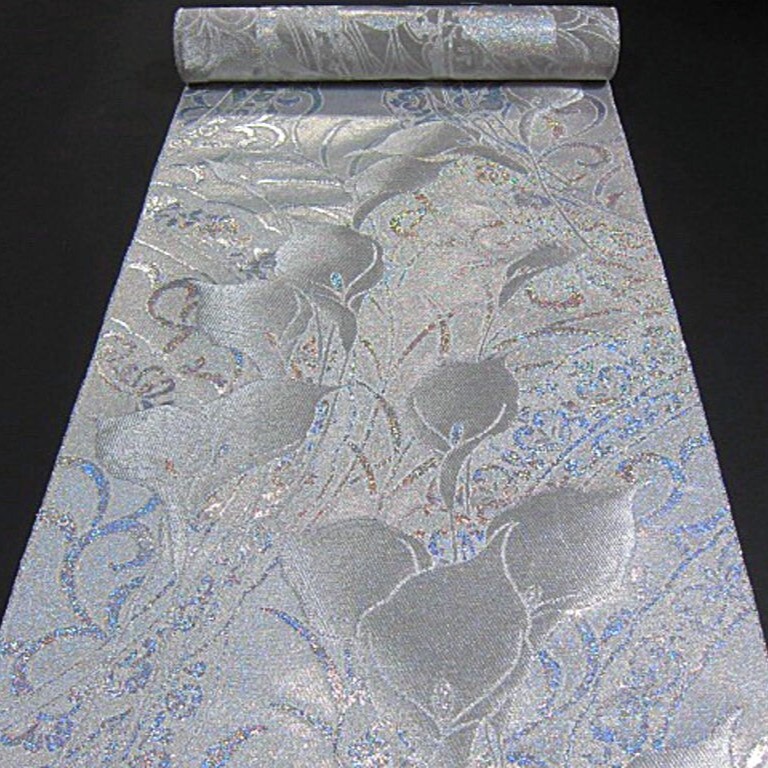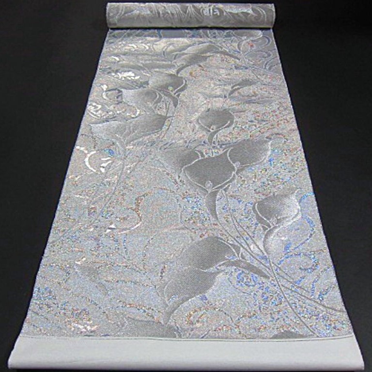 新品未仕立 西陣織六通柄丸巻袋帯です。 カラーの花の意匠がエレガントに織り上げられた素敵な帯です。大人女性の装いに相応しい一品。訪問着、色無地、小紋、付下げと、お使いいただけるかと思います。お出かけ・パーティー・観劇などにいかがでしょうか。こちらですが、丸巻の袋帯の為裏地などは、ついておりませんのでその点ご了承の上ご入札ください