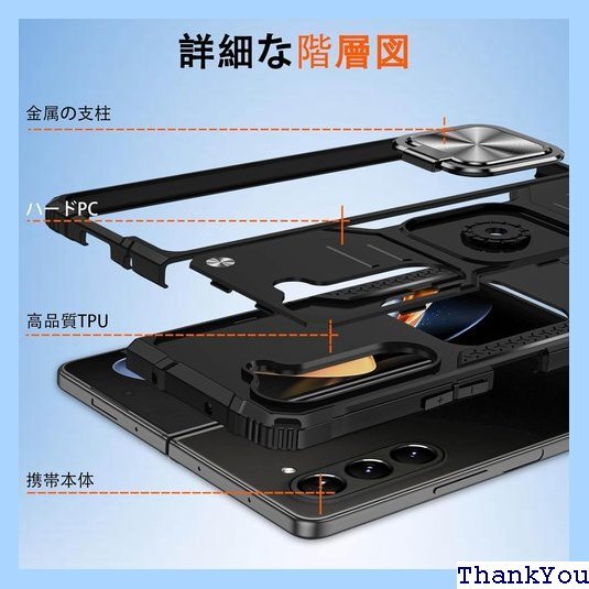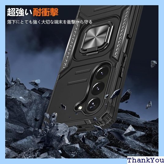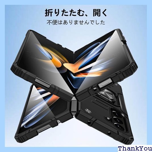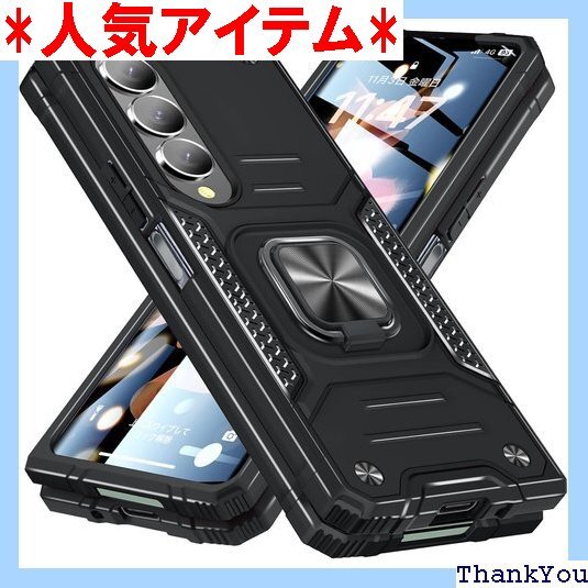 Galaxy Z Fold 4 ケース SC-55C/SCG16 ケース リング PC+TPU 米国軍事MIL標準取得 衝撃吸収 耐衝撃 落下防止 スタンド機能 二重構造 防塵 薄型 軽量 一体型 360度回転 全面保護カバー ギャラクシー Z フォールド 4 黒 W-KM-50-01 636
