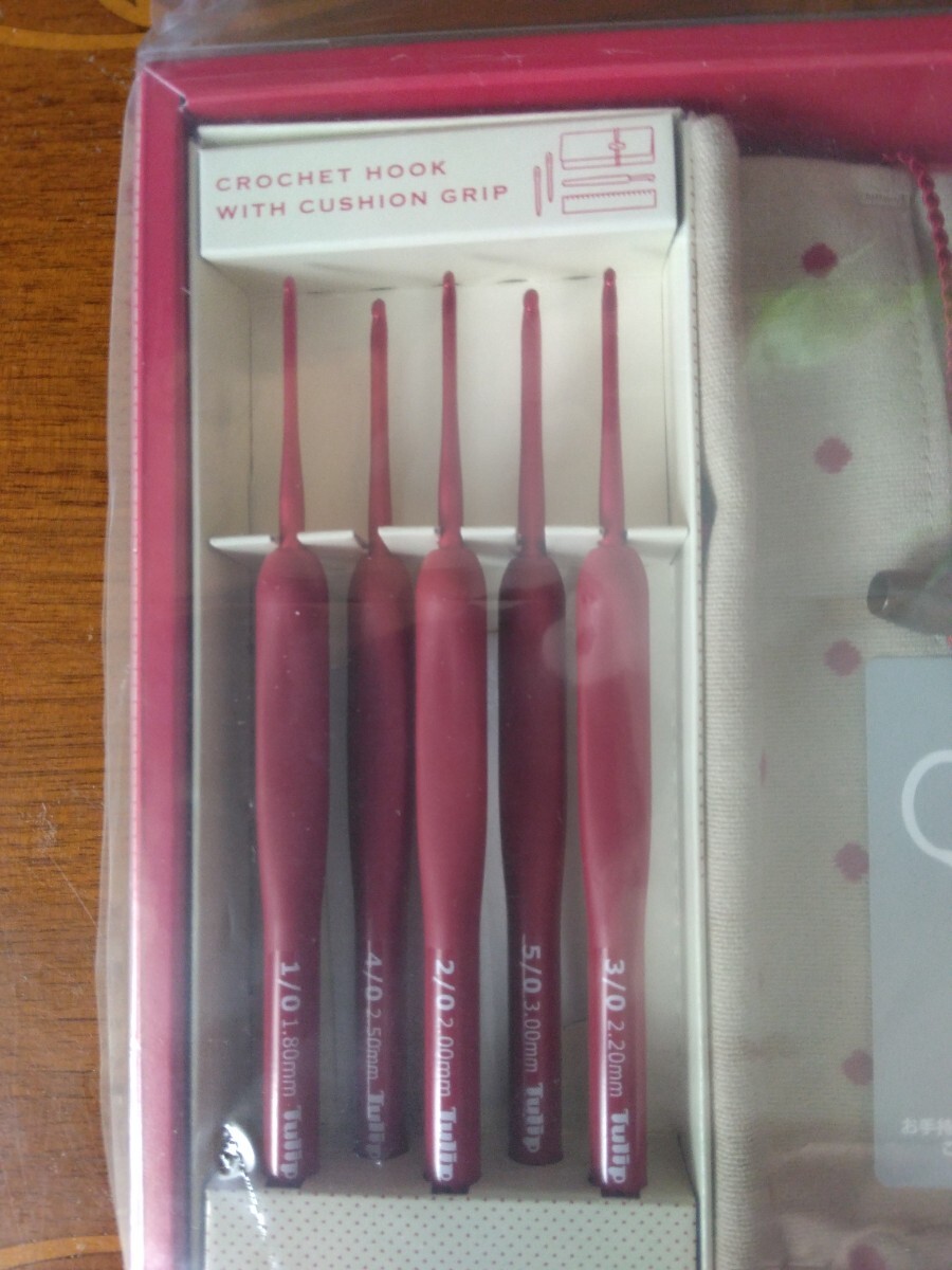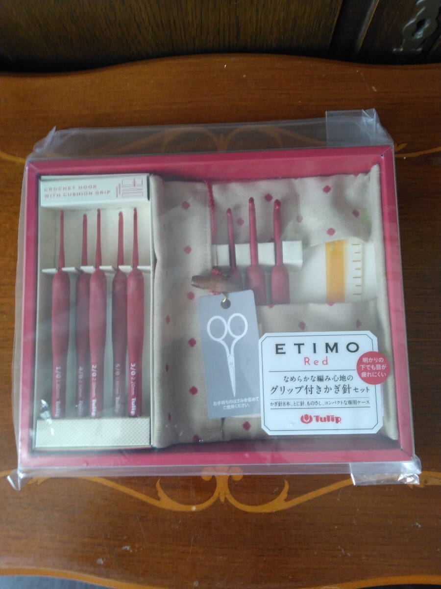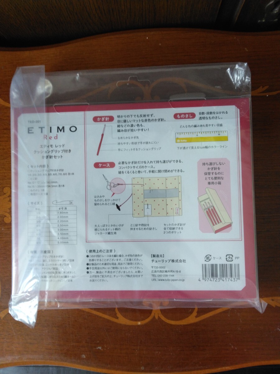 新品 未開封 エティモ レッド クッショングリップ付きかぎ針セットです。