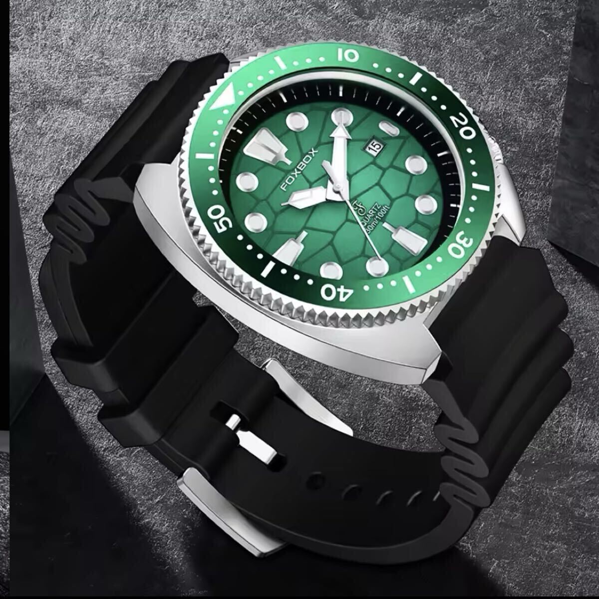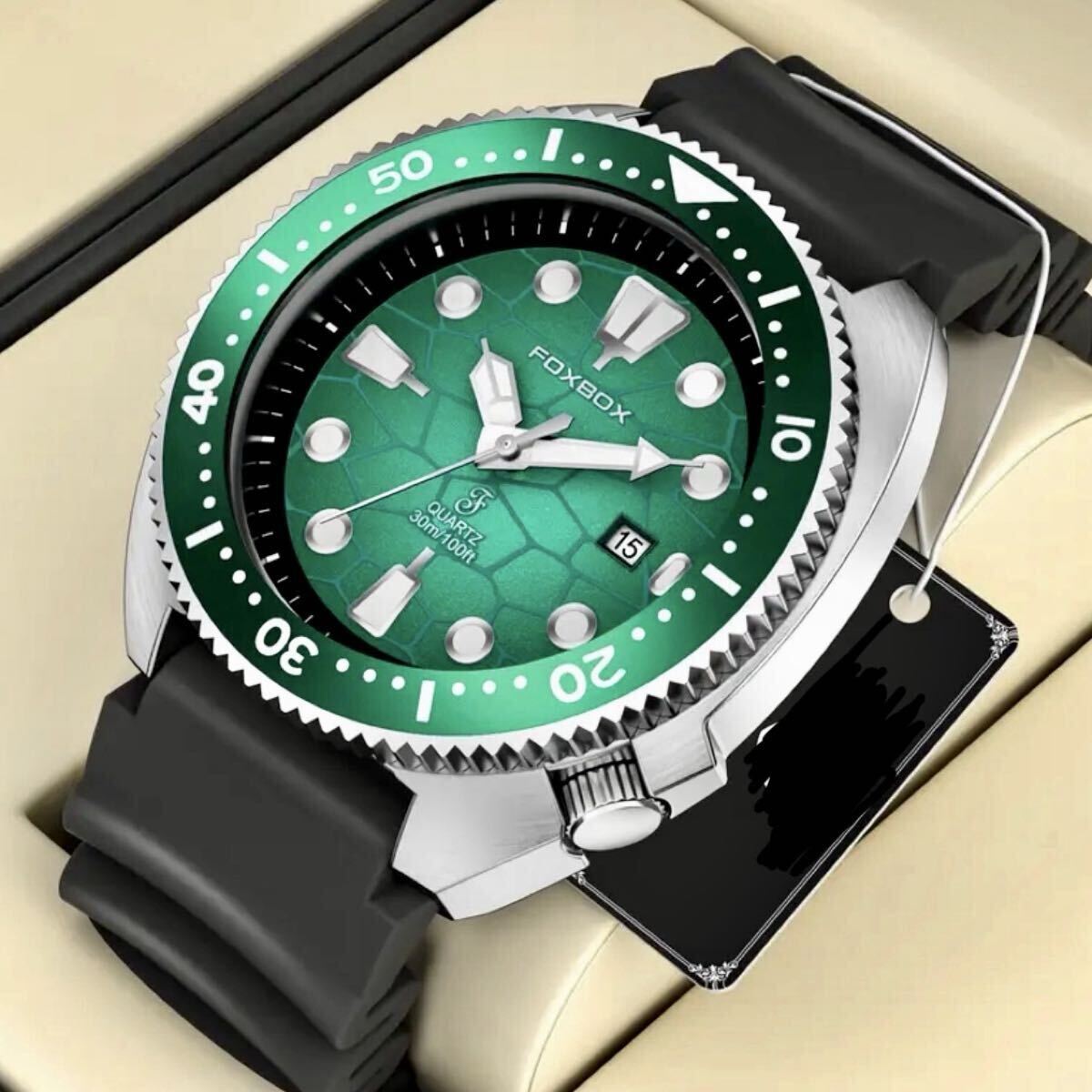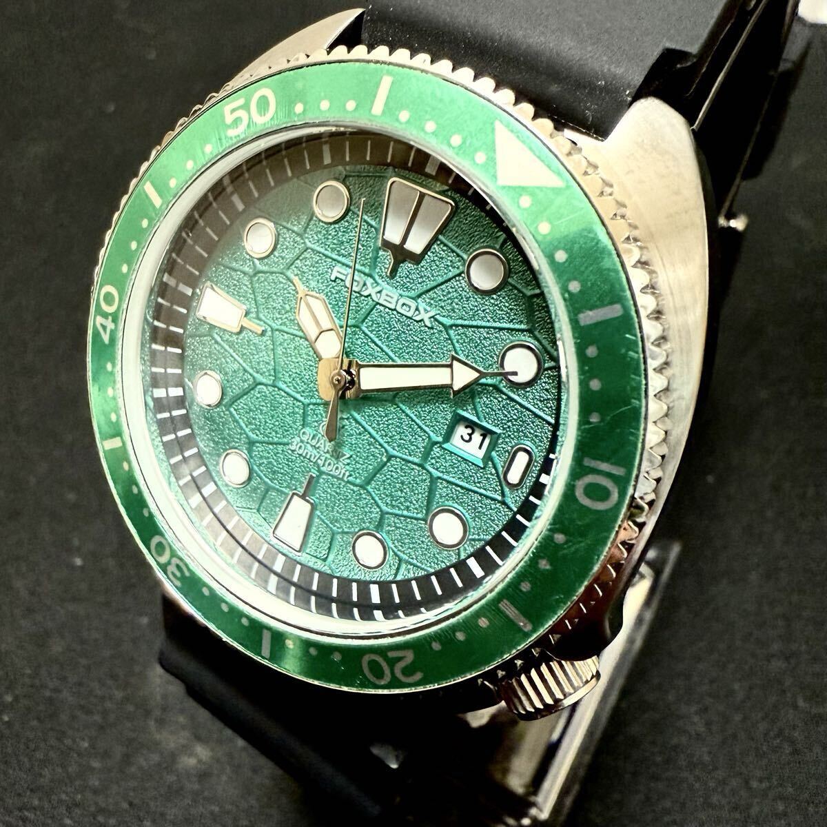 【1円スタート】新品 FOXBOX グリーンフェイス オマージュウォッチ メンズ腕時計 シリコンベルト FB0025