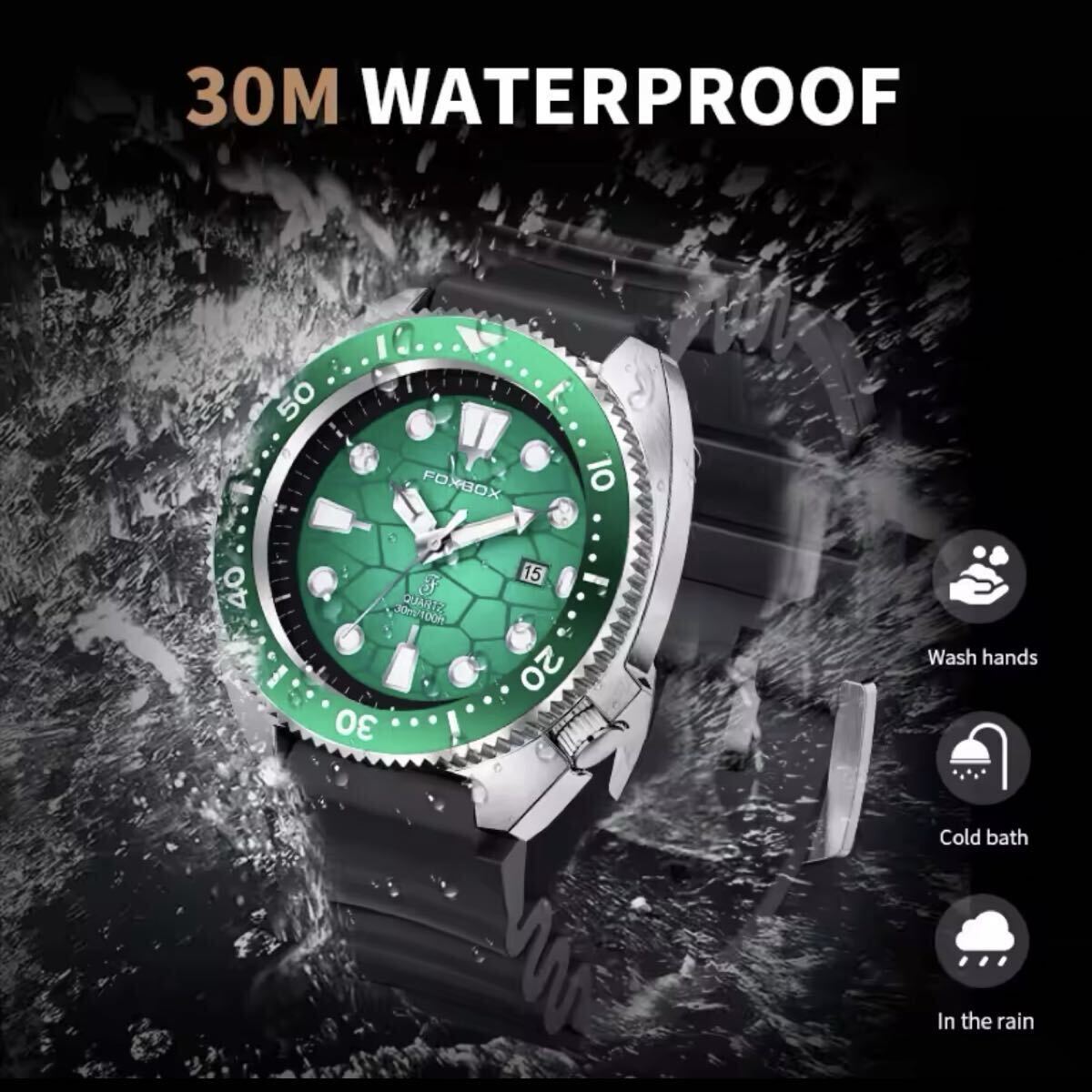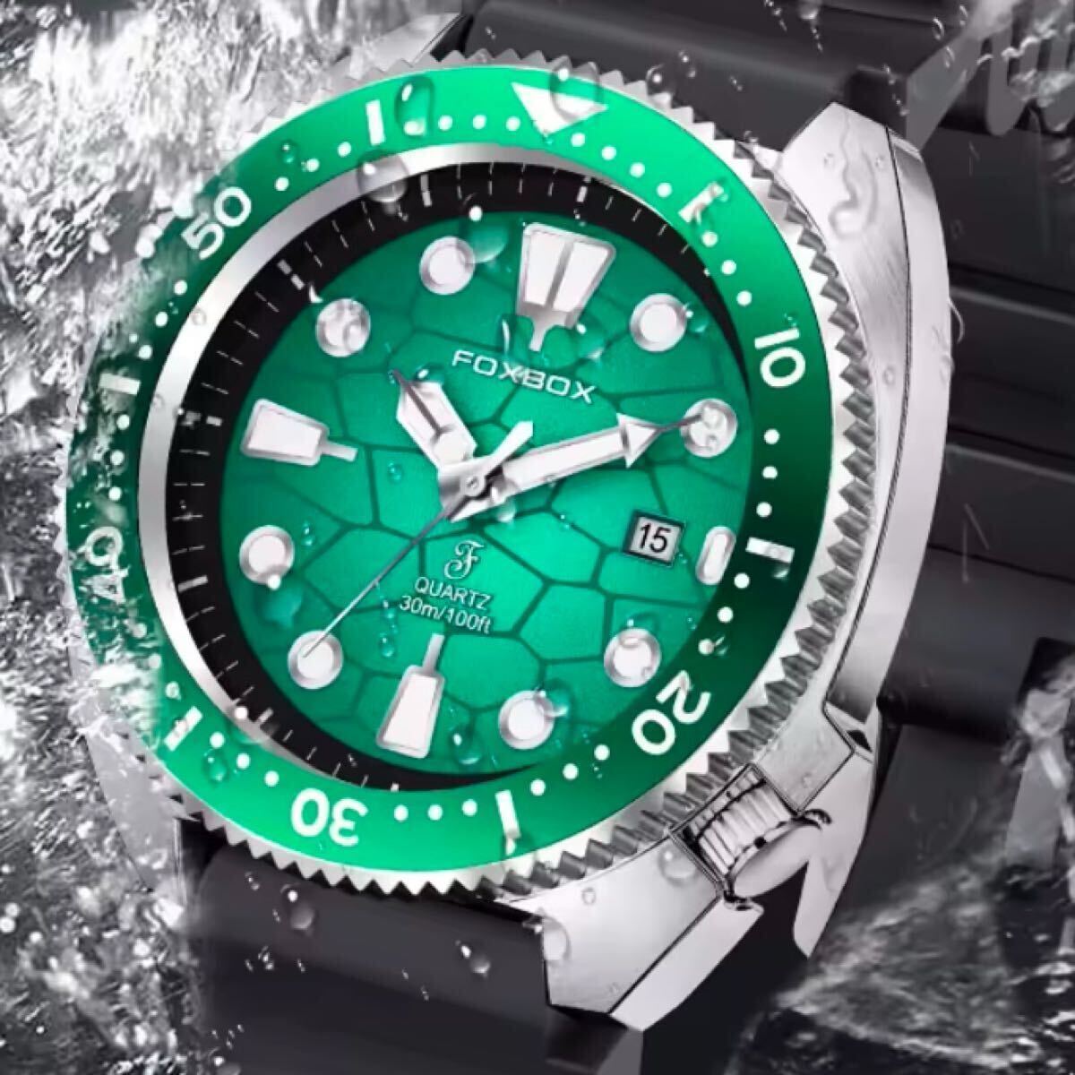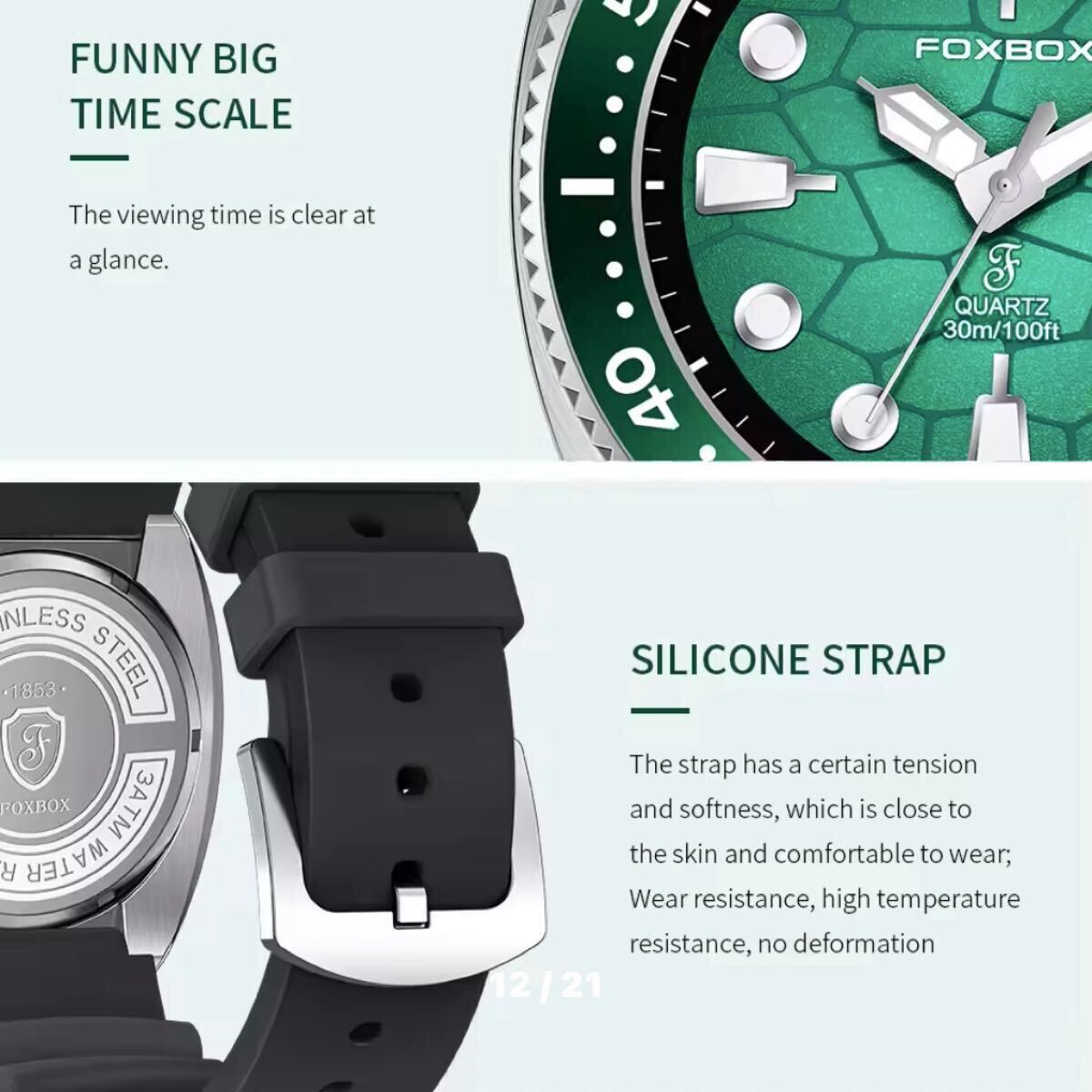 【1円スタート】新品 FOXBOX グリーンフェイス オマージュウォッチ メンズ腕時計 シリコンベルト FB0025