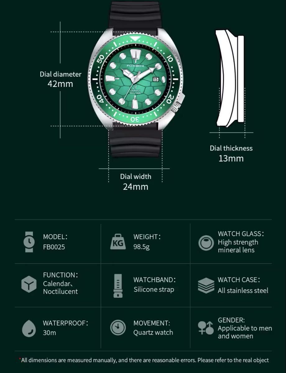 新品 FOXBOX グリーンフェイスウォッチ メンズ腕時計 FB0025 SS