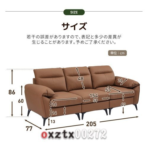 ソファ 3人掛け 幅205cm ソフトレザーソファ 3人掛け モダンスタイル リビングソファ ソファセット 高背もたれ【キャメル】