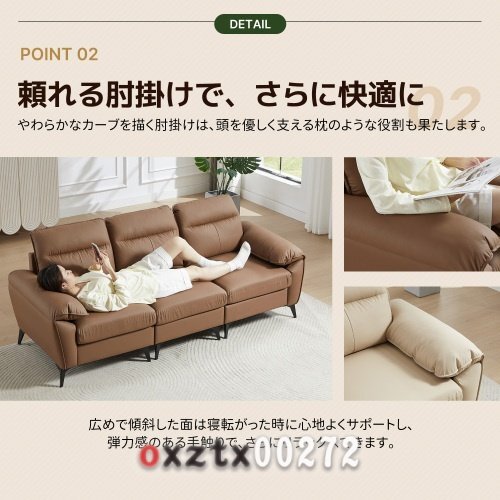 • ◎3【頼れる扶手で、さらに快適に】やわらかなカーブを描く肘掛けは、頭を優しく支える枕のような役割も果たします。広めで傾斜した面は寝転がった時に心地よくサポートし、弾力感のある手触りで、さらにリラックスできます。