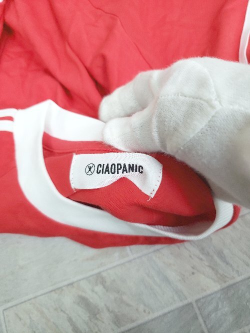 ◇ ◎●未使用●⊂ CIAOPANIC タグ付き 刺繍 ロゴ ライン 半袖 Tシャツ カットソー サイズF レッド レディース P