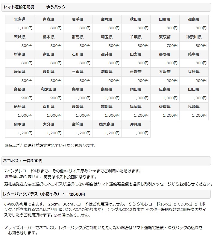 入金を確認次第発送致します。 ※ご入金頂いた当日~翌日に発送しておりますが発送・お届けに一週間程度 お時間を頂く場合がございます。 あらかじめご了承下さい。 ![]() 定形外・普通郵便、メール便、 代金引換等は、取扱い致しません。 ご了承下さい。 海外発送はしていません(Seller will Not Ship internationally.)。 ★上記の内容と写真の現状でご了解・ご判断が頂ける方のみ、ご参加をお願い致します。 ★状態記述に関しましては個人的な見解の差にもよります為、誤差についてはご了承下さいますよう、お願い申し上げます。 ★状態を多いに気にされる方は、念のため、ご入札をご遠慮下さい。 | ||||