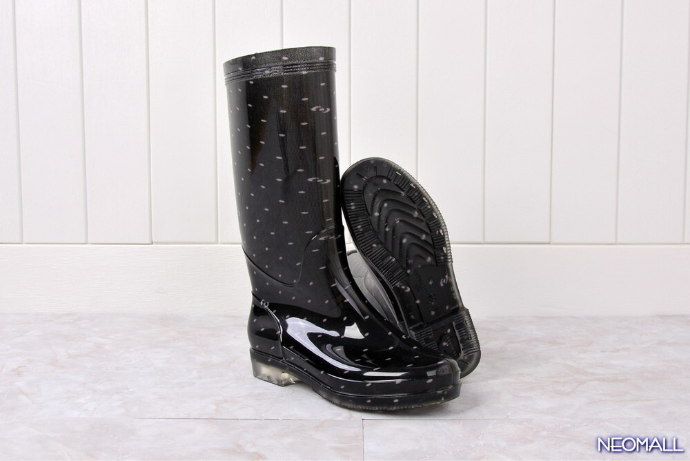 1スタ☆ レインブーツ【502】 Sサイズ ブラック 水玉小 防水 レインシューズ レディース 雨靴 長靴 梅雨対策 防滑 防水 雨 雪 晴れ兼用