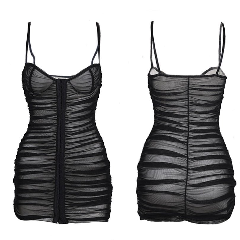 *大人のタイトなセクシーシルエットがボディーラインにピッタりとフィットでデコルテの透け感が艶感を演出します
