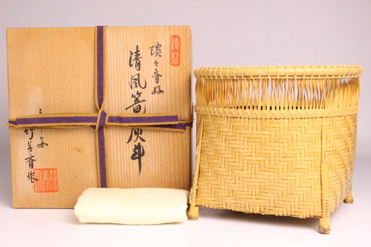 京都 竹美斎 作 淡々斎 好 清風篭炭斗 「共箱」