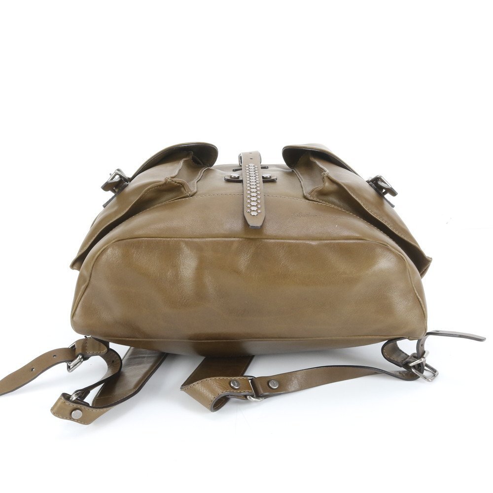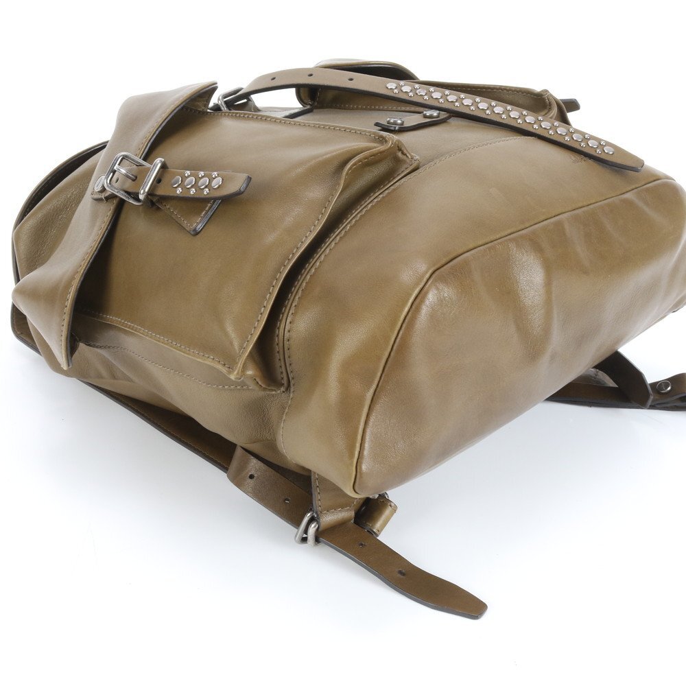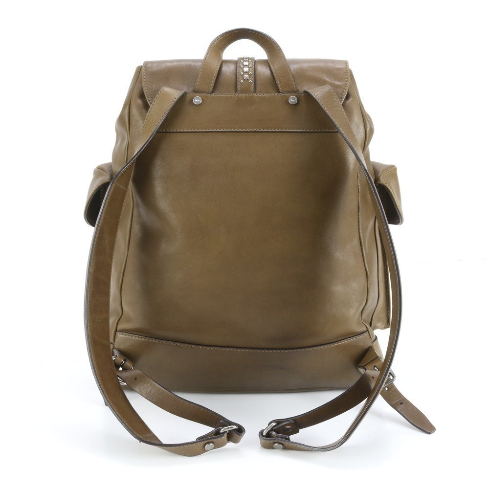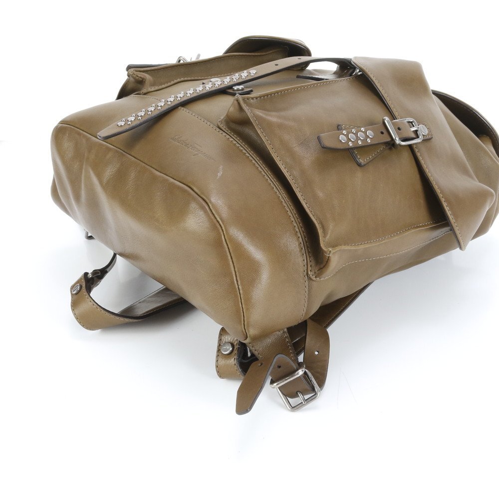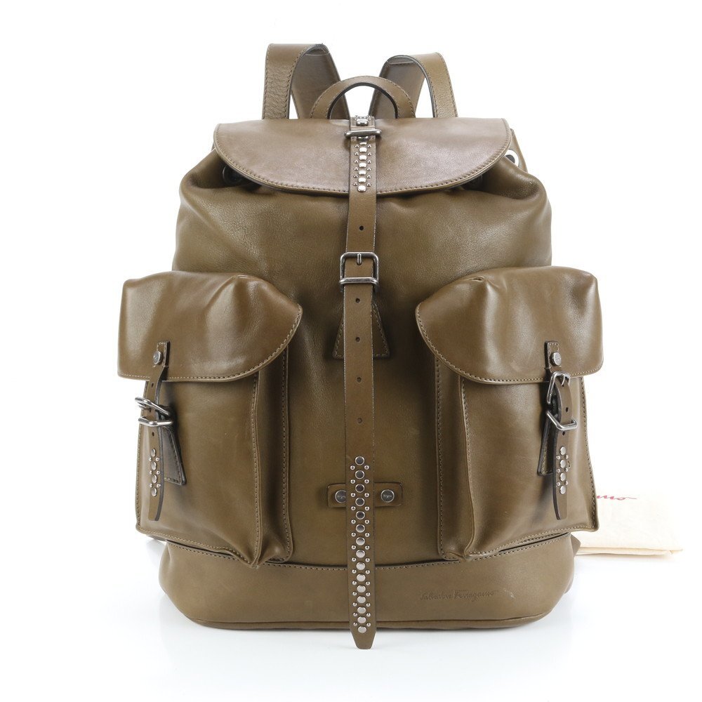 1円■極美品■サルヴァトーレフェラガモ■スタッズ カーキ レザー リュックサック バックパック バッグ 本革 A4 メンズ ERM DC12-3