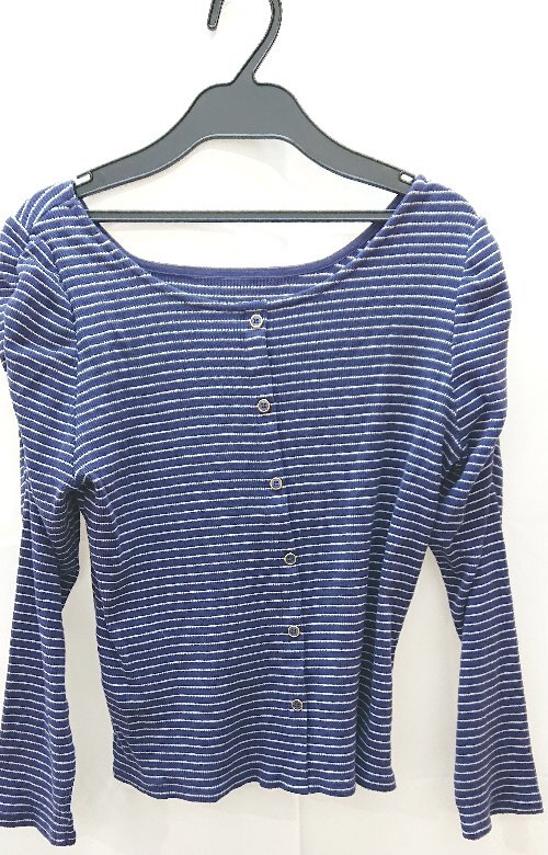 ◇ ROPE PICNIC クルーネック ボタン ボーダー 長袖 カーディガン トップス サイズ38 ネイビー レディース E