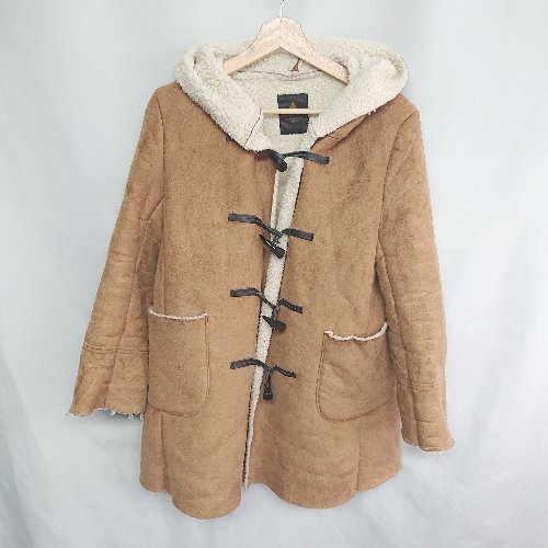 ◇ nano universe ナノ ユニバース ボア スウェード風 カジュアル 長袖 ダッフル コート サイズ38 キャメル レディース E