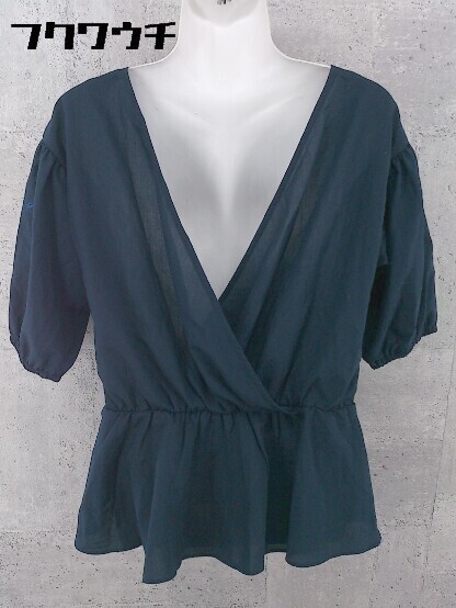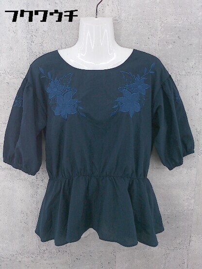 ◇ AZUL by moussy アズール バイ マウジー カシュクール 刺繍 五分袖 シャツ サイズM ネイビー レディース