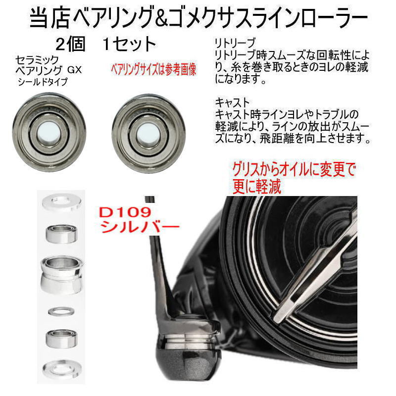 シマノ ラインローラー 用 アニーベアリング【セラミックベアリング GX 2個+ゴメクサス ラインローラーD109 シルバー 1個セット】