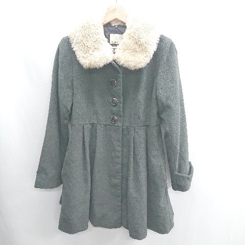 ■ ⊇ OLIVE des OLIVE オリーブ デ オリーブ ボア 取外し可能 長袖 コート サイズF グレー レディース E