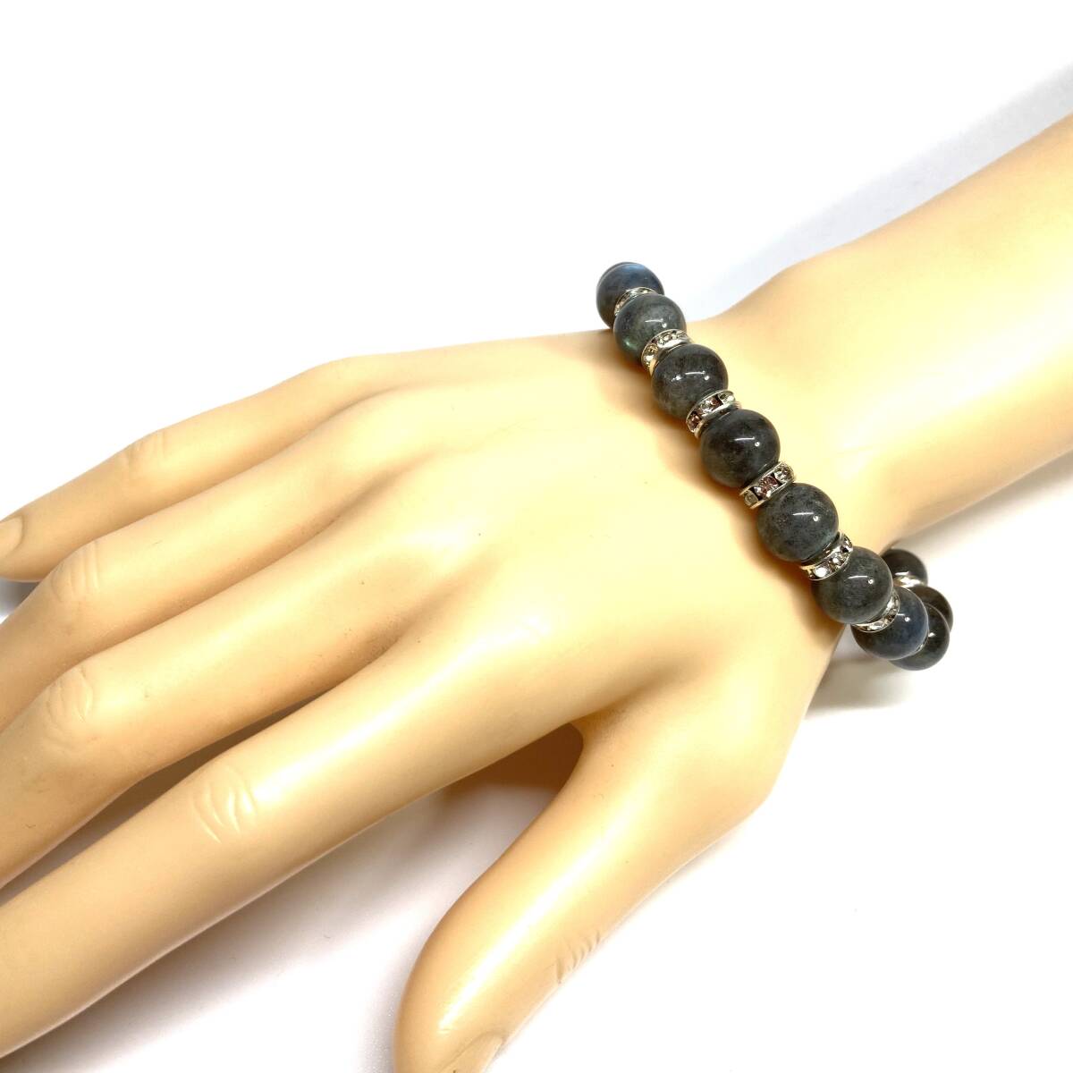 ラブラドライト パワーストーン ブレスレット 10mm (シルバー) 天然石ブレス 数珠ブレス メンズ・レディース 男性 女性 幸運 開運 浄化 ☆
