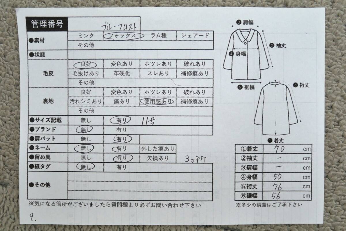 ☆ブルーフロストフォックス☆ハーフコート☆着丈70cm☆襟大き目☆