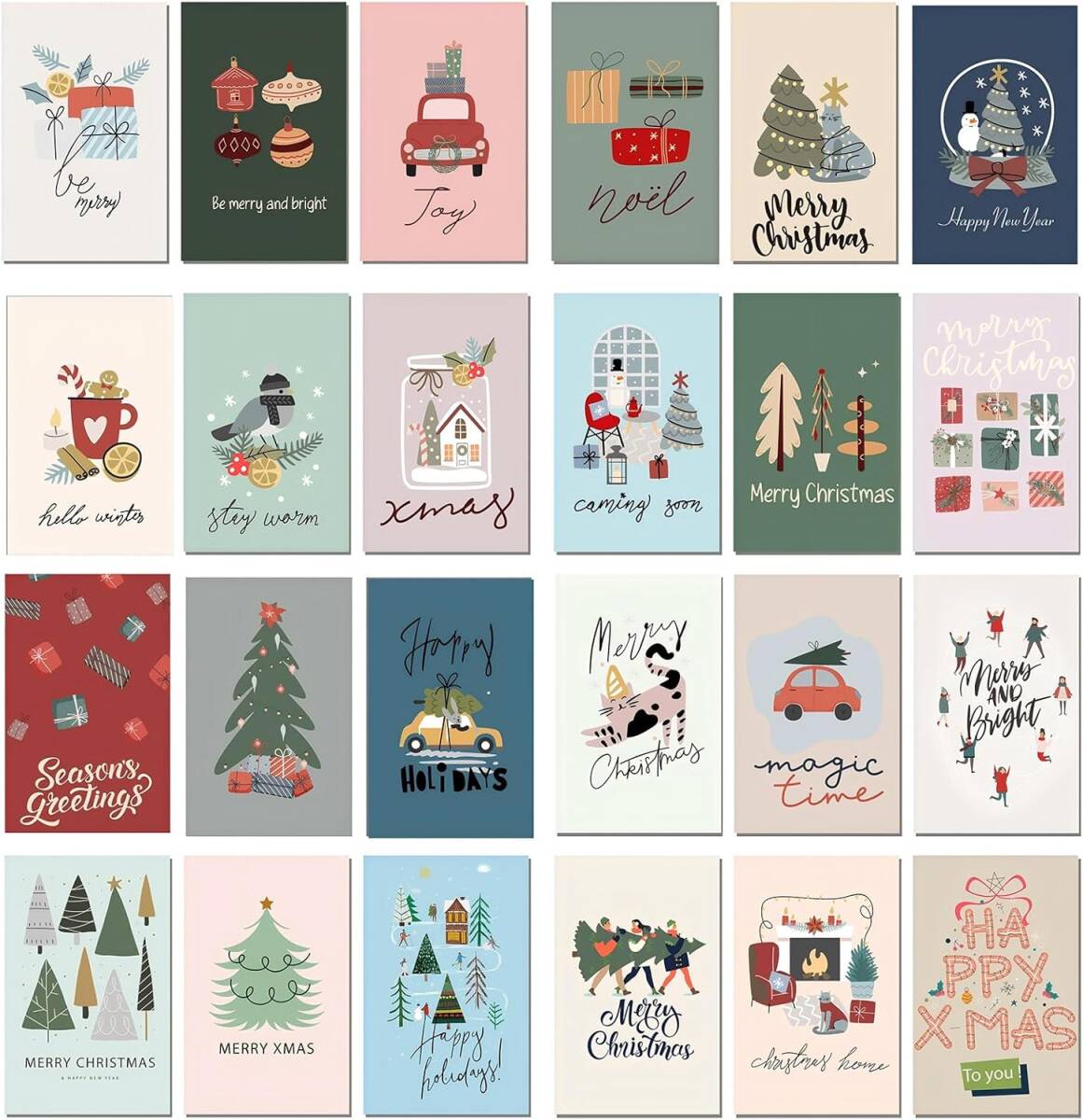 優しい気持ち クリスマスカード ポストカード メッセージカード 24枚セット 24種 封筒付き グリーティングカード ポストカード