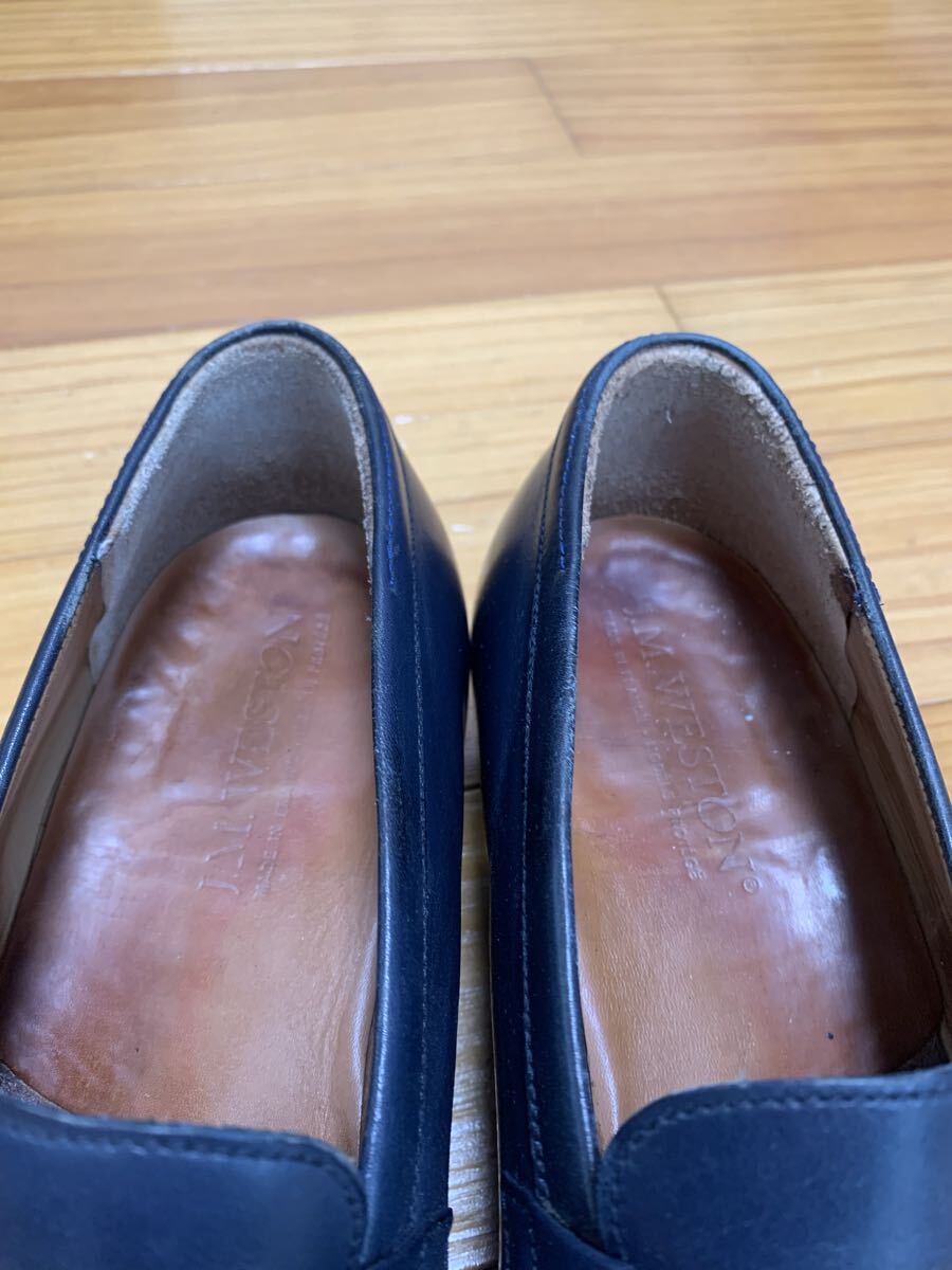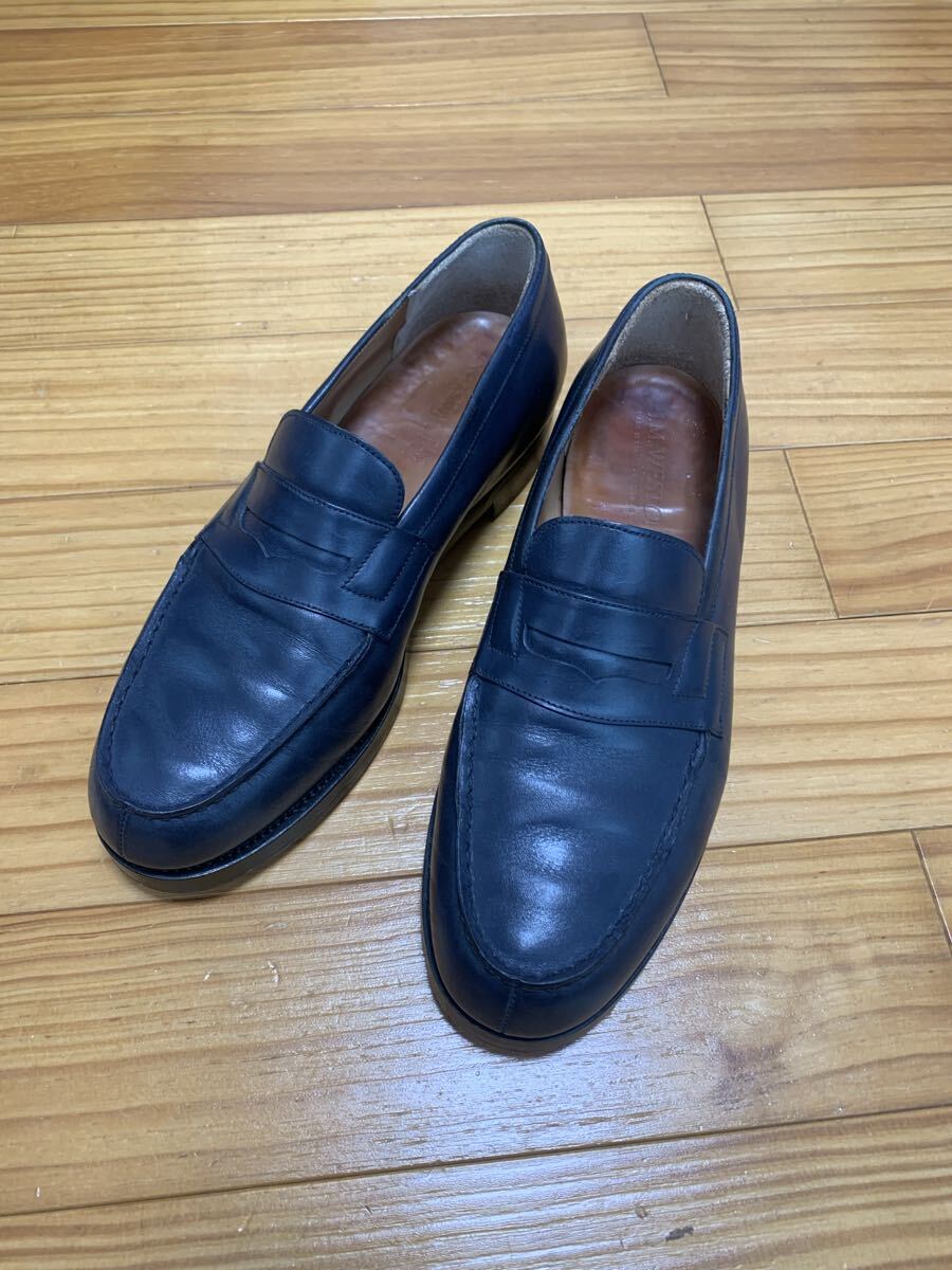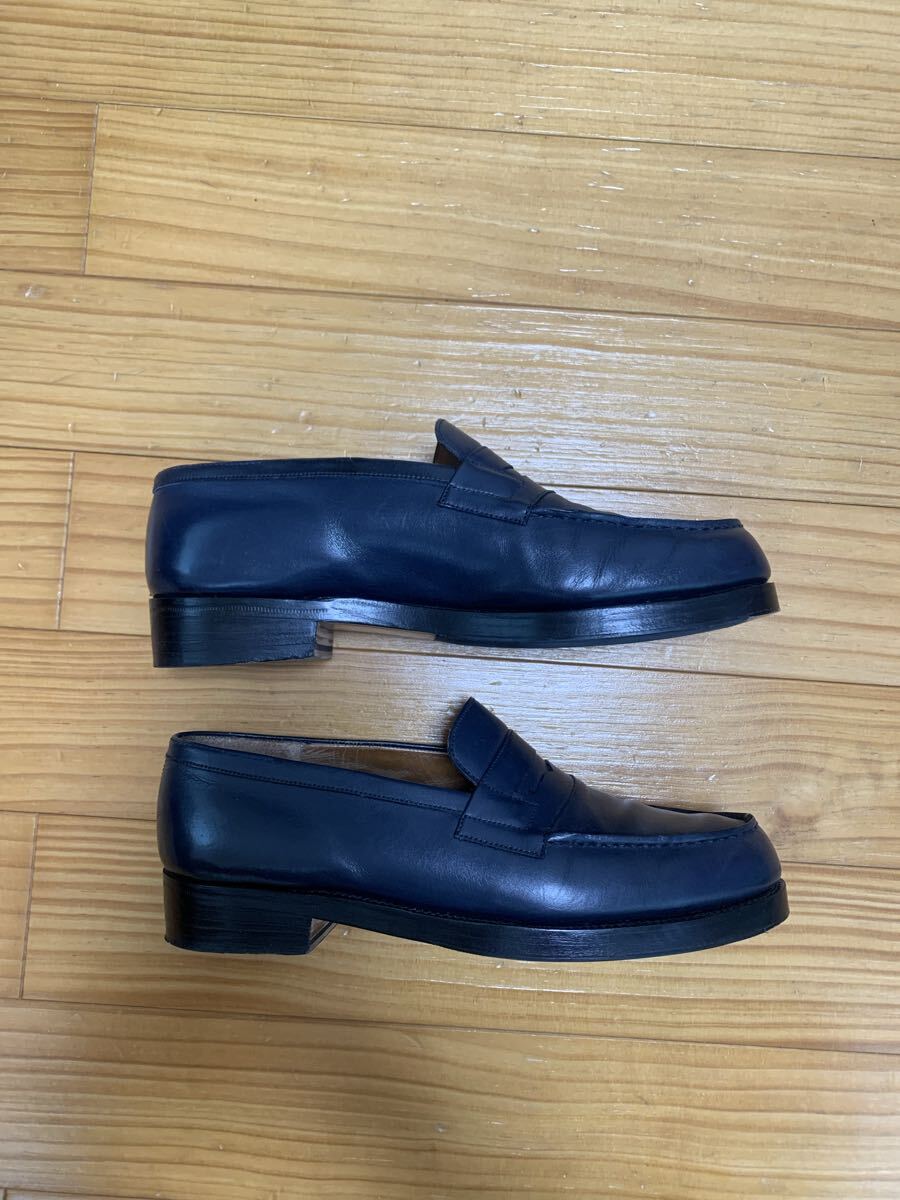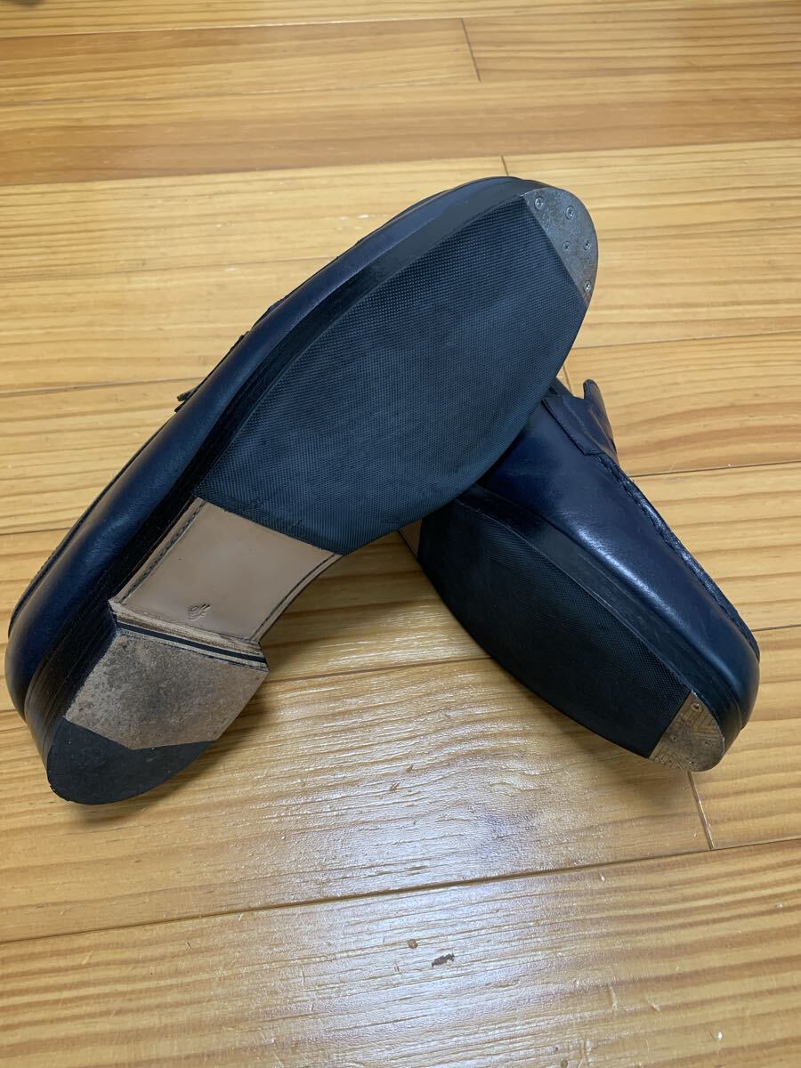 現在では旧ロゴとなった180シグネチャーローファーです。ネイビーのボックスカーフです。Brift Hにて、ヒールカップ補修、ダブルソールへ変更、靴底ラバーとトゥスチールを取り付けしております。最近は本家からトリプルソールもリリースされていますが、ダブルソールにすることで、走破製が格段に上がり、点字ブロックなどの段差も全く気にならなくなりました。リペア後はほとんど着用しておらず、綺麗な状態を保っています。ライニングは両足小指部分に破れがあります。着用機会が減りましたので、出品致します。ご検討宜しくお願い致します。