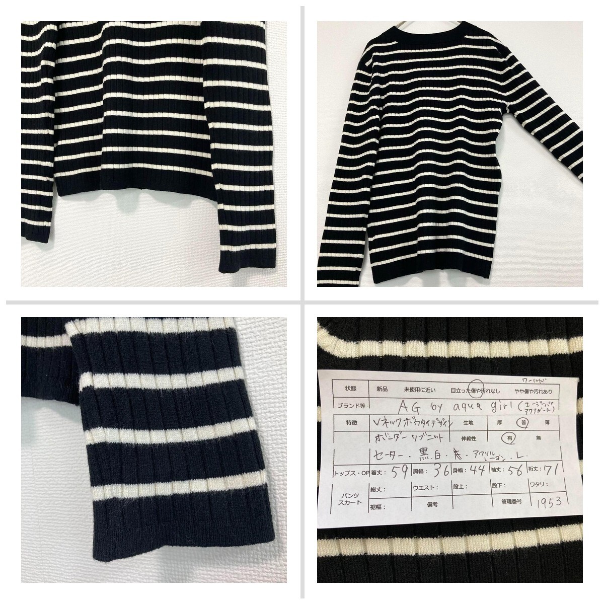 このAG by aquagirlのニットは、黒と白のストライプデザインが特徴で、シンプルながらもスタイリッシュな印象を与えます。