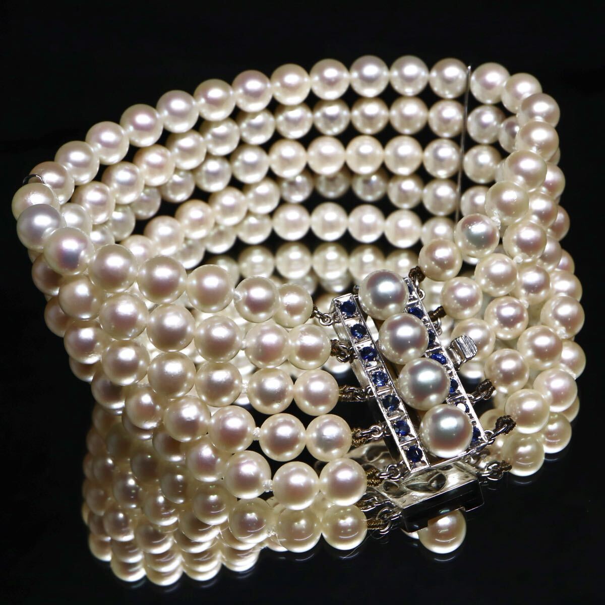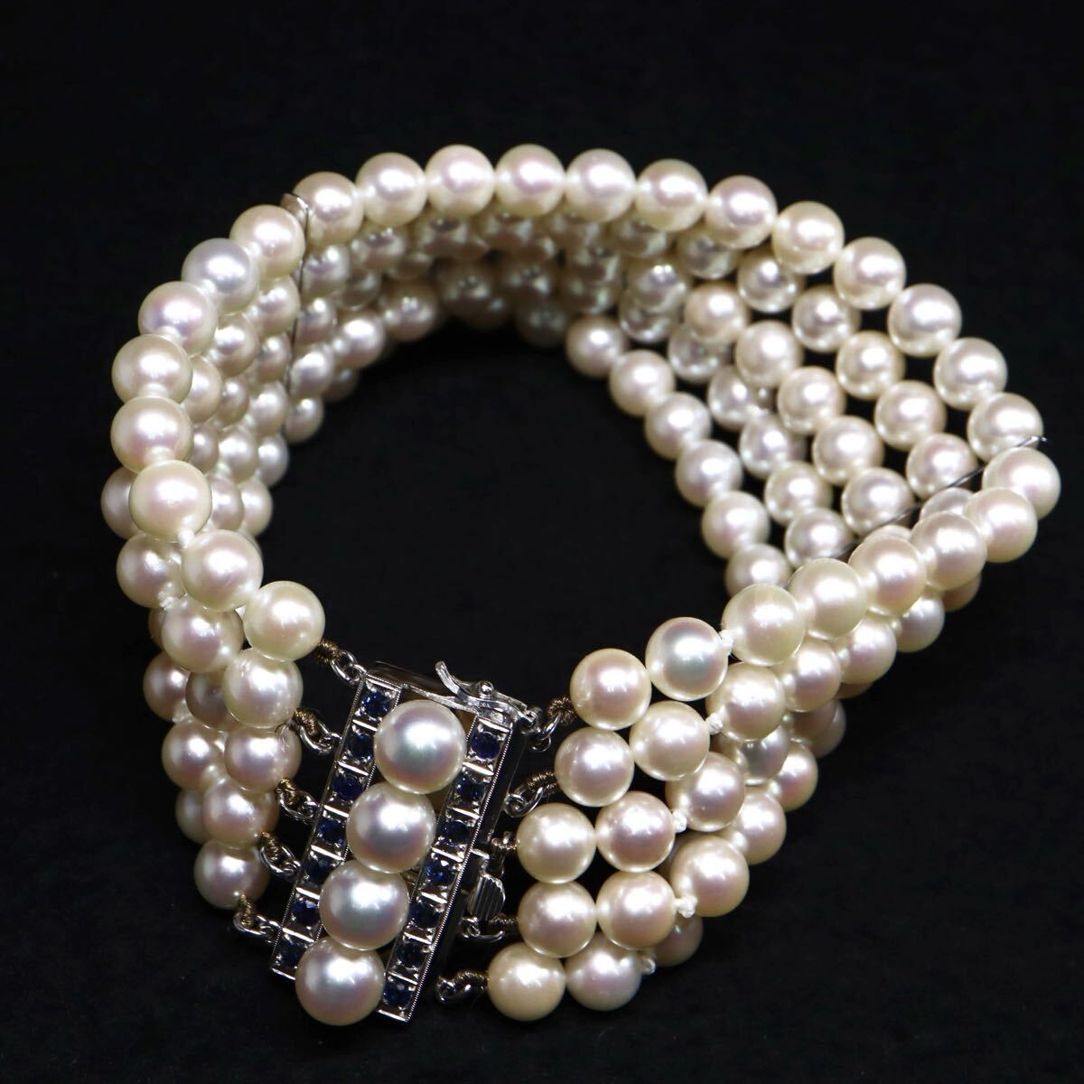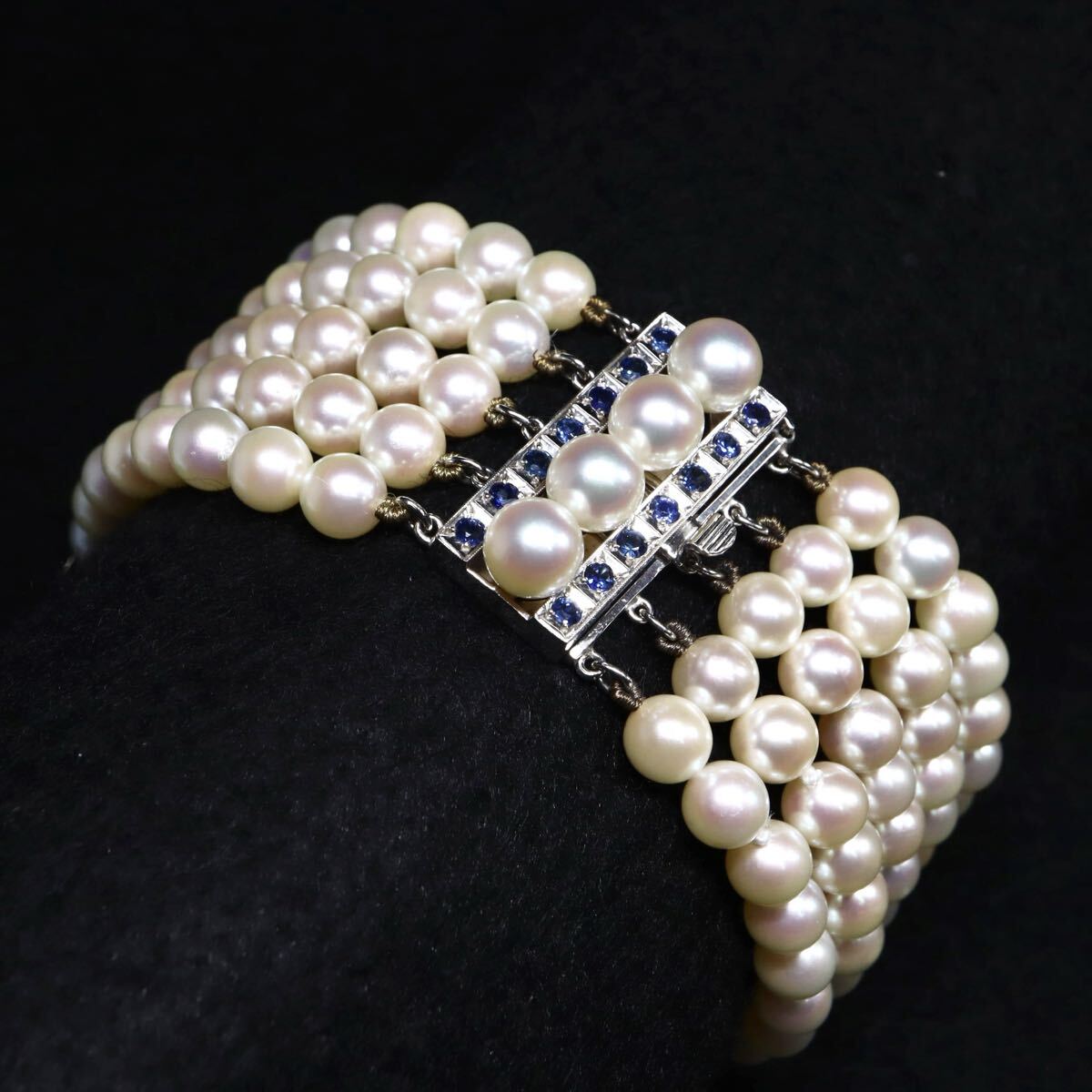 〈天然サファイア付き!!アコヤ本真珠ブレスレット〉