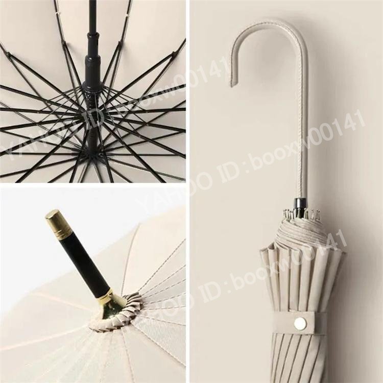 長傘 雨傘 レディース メンズ ワンタッチ長傘 梅雨対策 耐風 無地 和風傘 頑丈 16本骨 マカロン色 便利 男 女 贈り物 グレージュ hhw0007.1