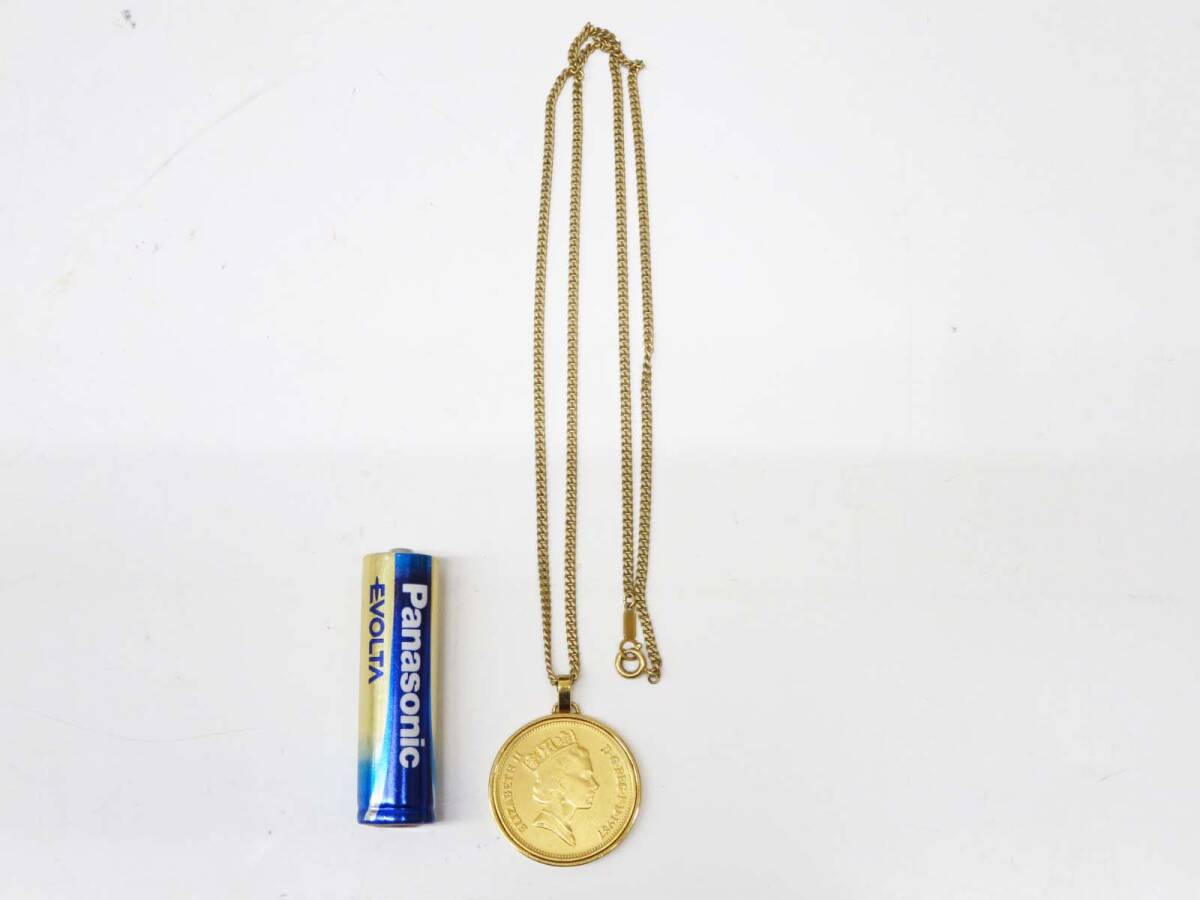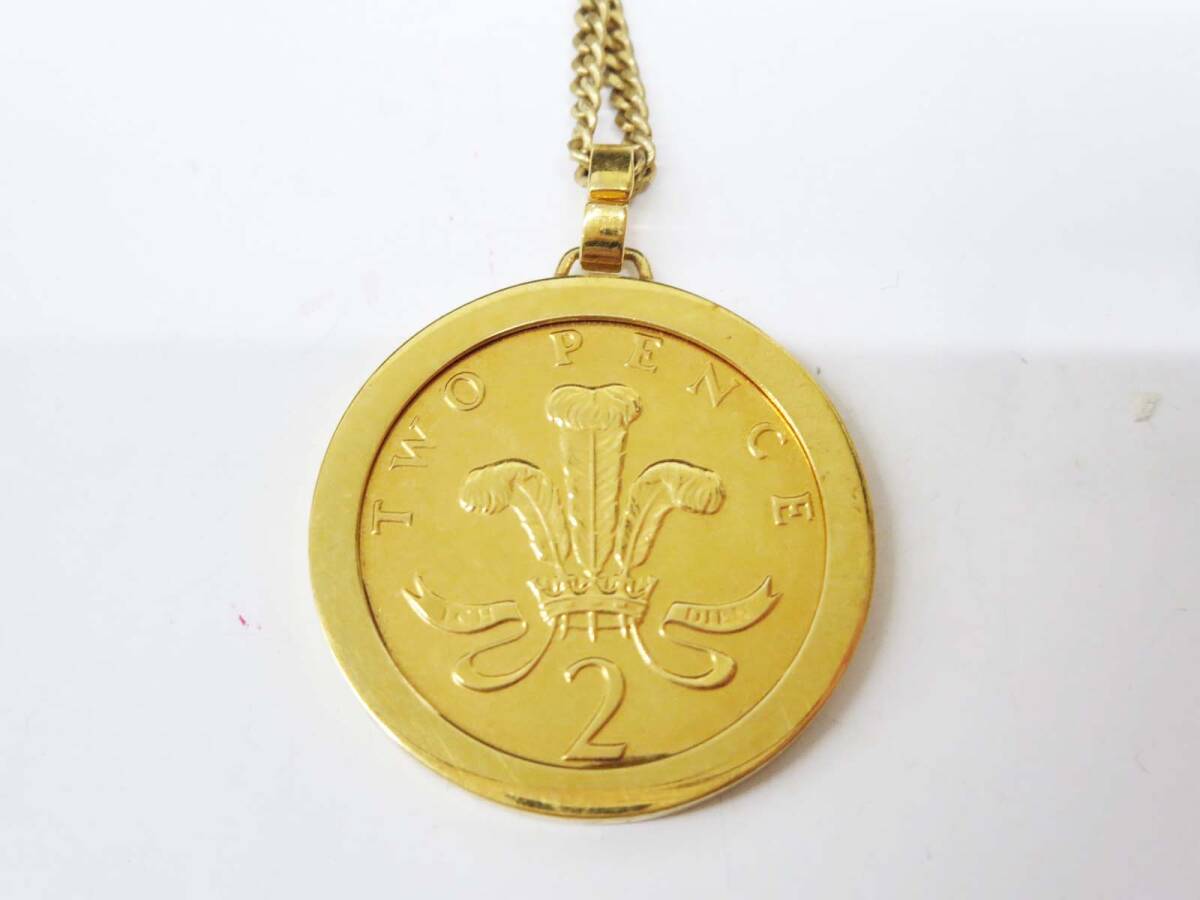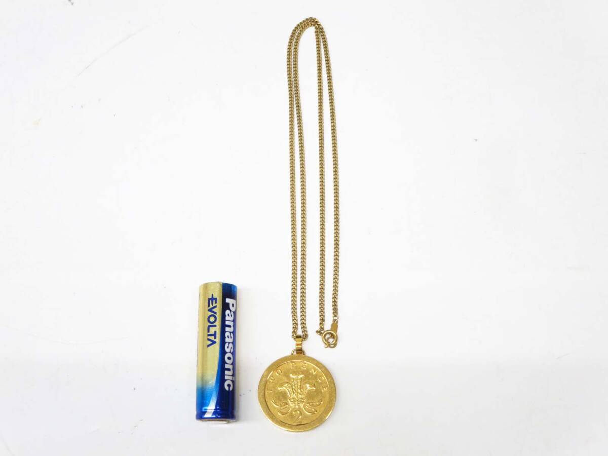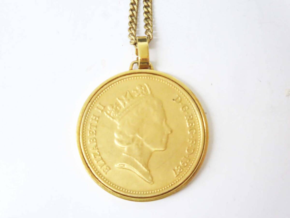 ◆(EG) エリザベス2世 コインペンダント ネックレス 1987年 2ペンス コイン デザイン ゴールド 装飾品 アクセサリー ファッション雑貨