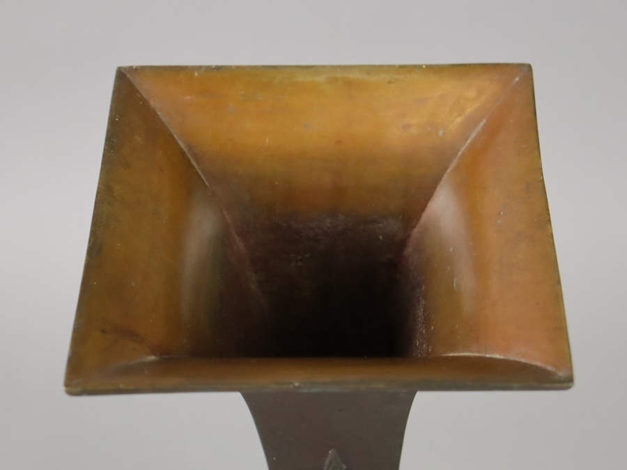 時代 在銘 銅製 饕餮紋 尊式 花瓶 高37,4cm 花器 細密細工 古美術品[d1319]