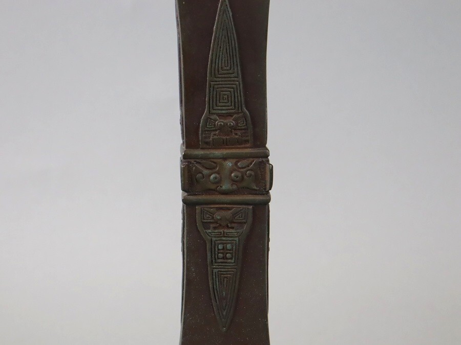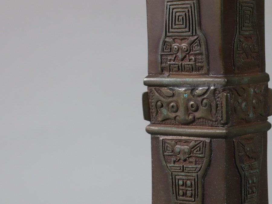 【時代 在銘 銅製 饕餮紋 尊式 花瓶 高37,4cm】