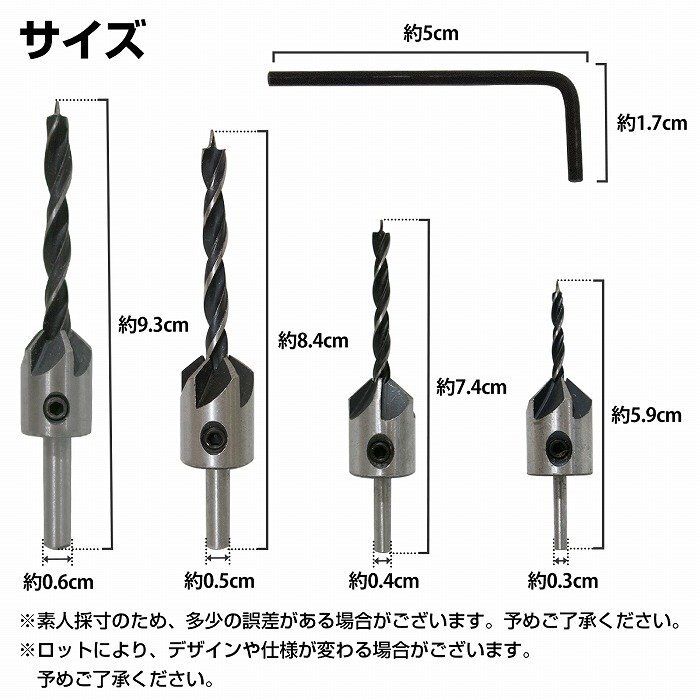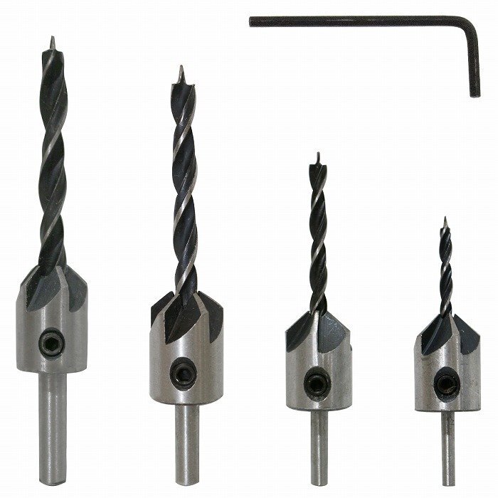 皿穴ドリルビット4本 : 3mm 4mm 5mm 6mm
