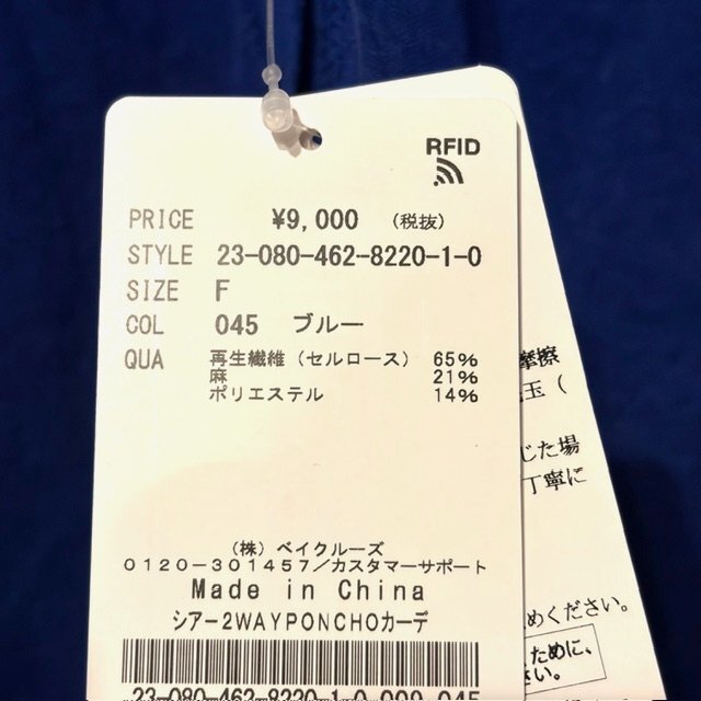 | 【新品】JOURNAL STANDARD relume ジャーナルスタンダートレリューム シアー2WAYポンチョカーデ レディース フリーサイズ ブルー 春夏 羽織 HMY |