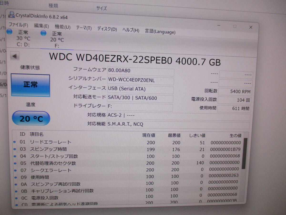 I-O DATA 4TB 外付けHDD / 正常 動作品★使用:611時間 ★Windows/Mac/PS5/テレビ録画 4K 対応★USB接続 外付け ハードディスク★ No:753
