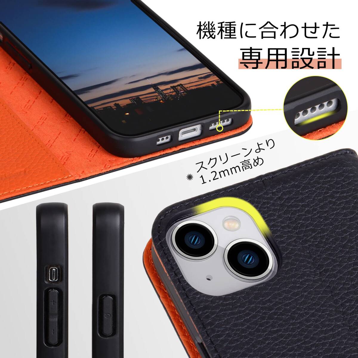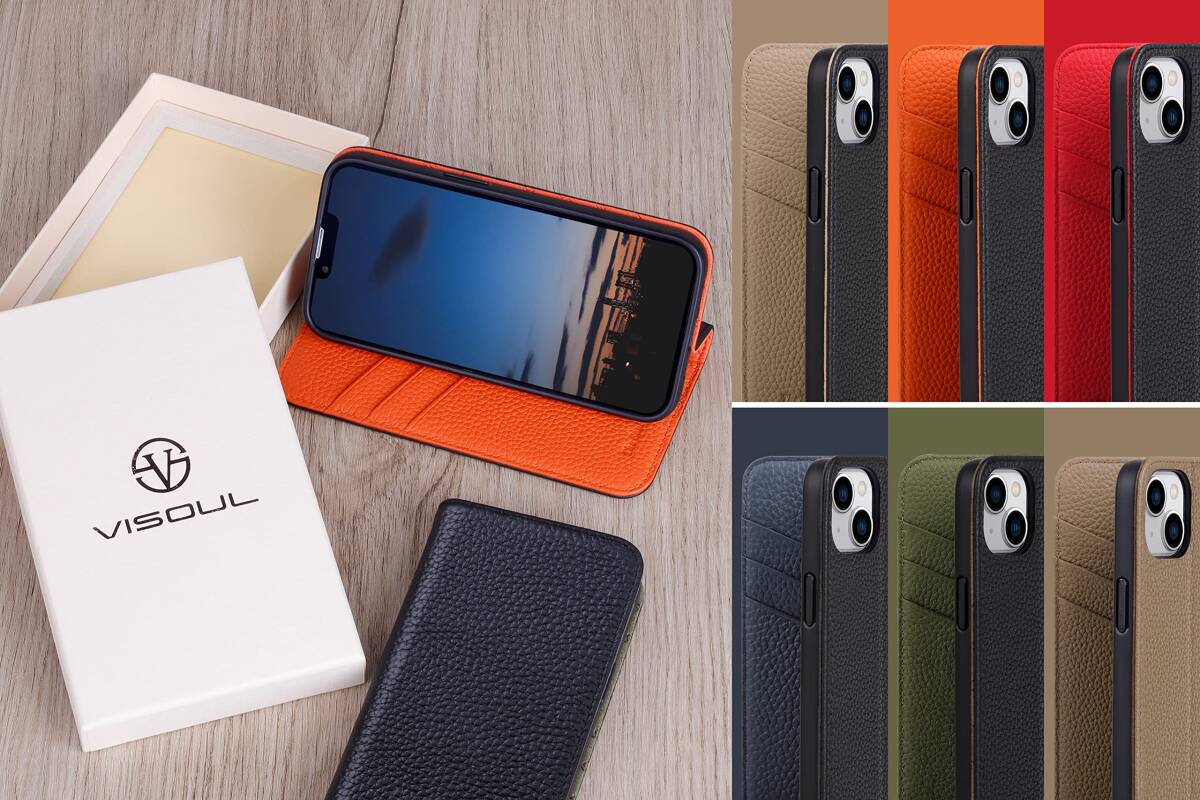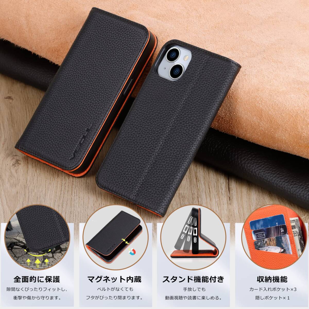 VISOUL iphone14 ケース 本革 スマホケース レザー 手帳型 アイフォン14 カード収納 携帯 全面保護 柔軟なTPU素材 マグネット式 スタンド機能付き アイホン14 対応 6.1インチ オレンジ