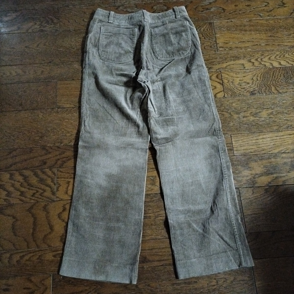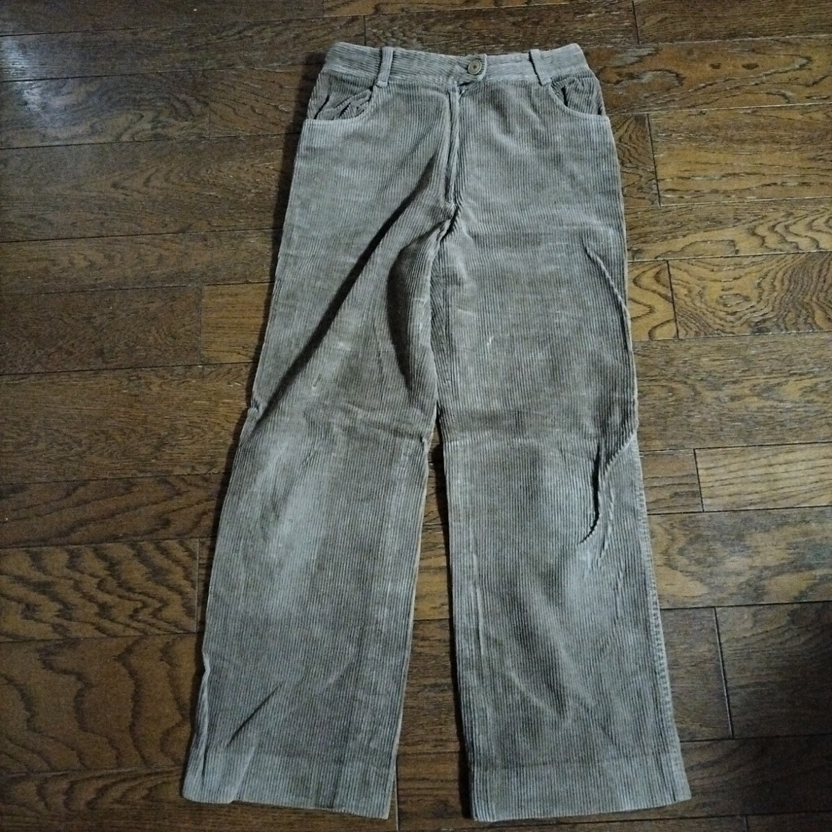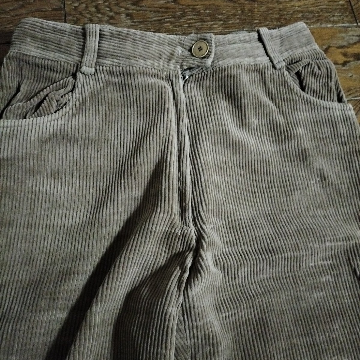 ベージュのコーデュロイ製ストレートレッグパンツ、前ポケット付き