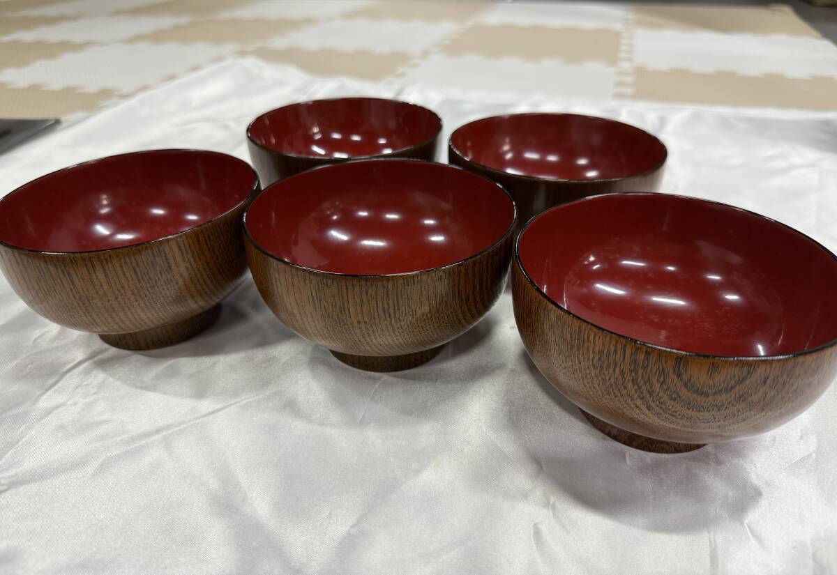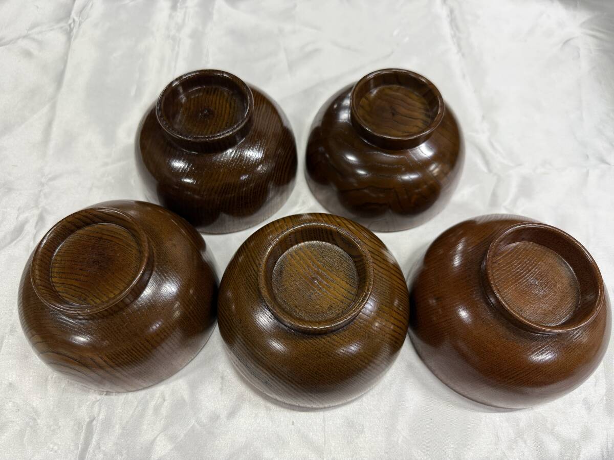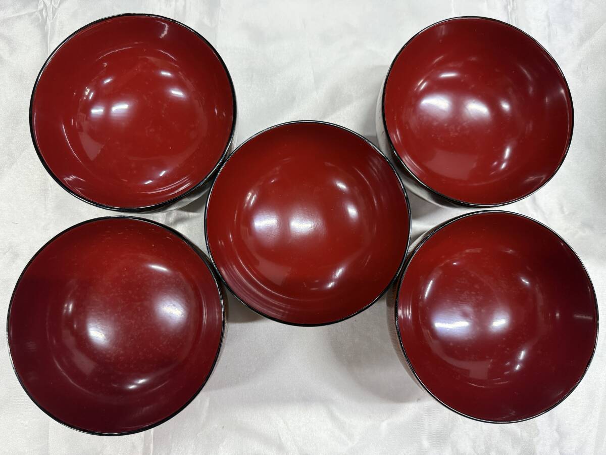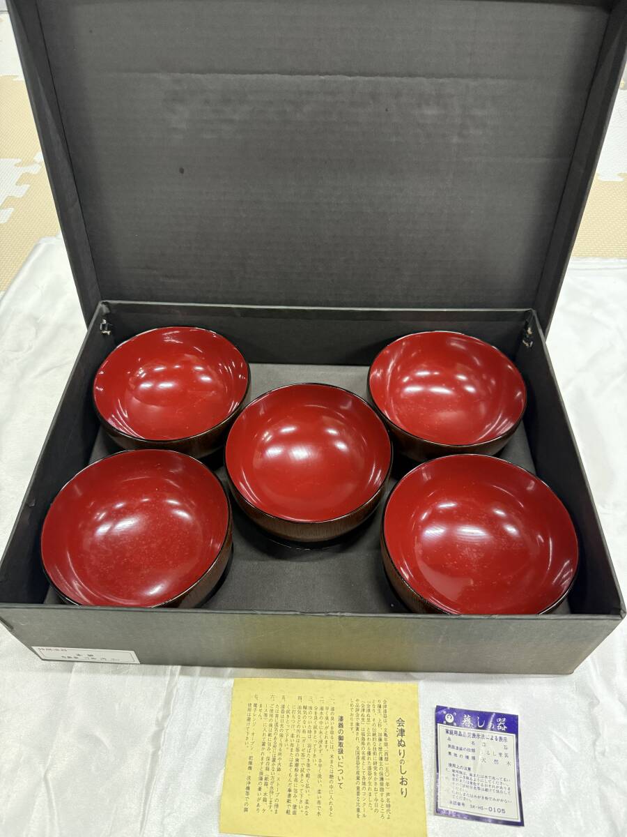 『【1円スタート!】S12 お椀 箸 箸置き セット 中古品 漆器 器 5客セット 木製 お雑煮 お吸物 汁椀 和食器 会津ぬり 伝統工芸 現状品 レトロ』