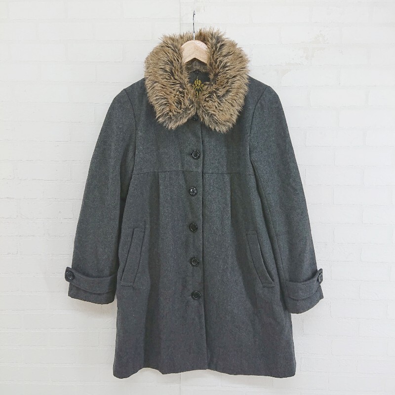 ◇ MAJESTIC LEGON フェイクファー ウール混 長袖 コート サイズF ダークグレー系 レディース P