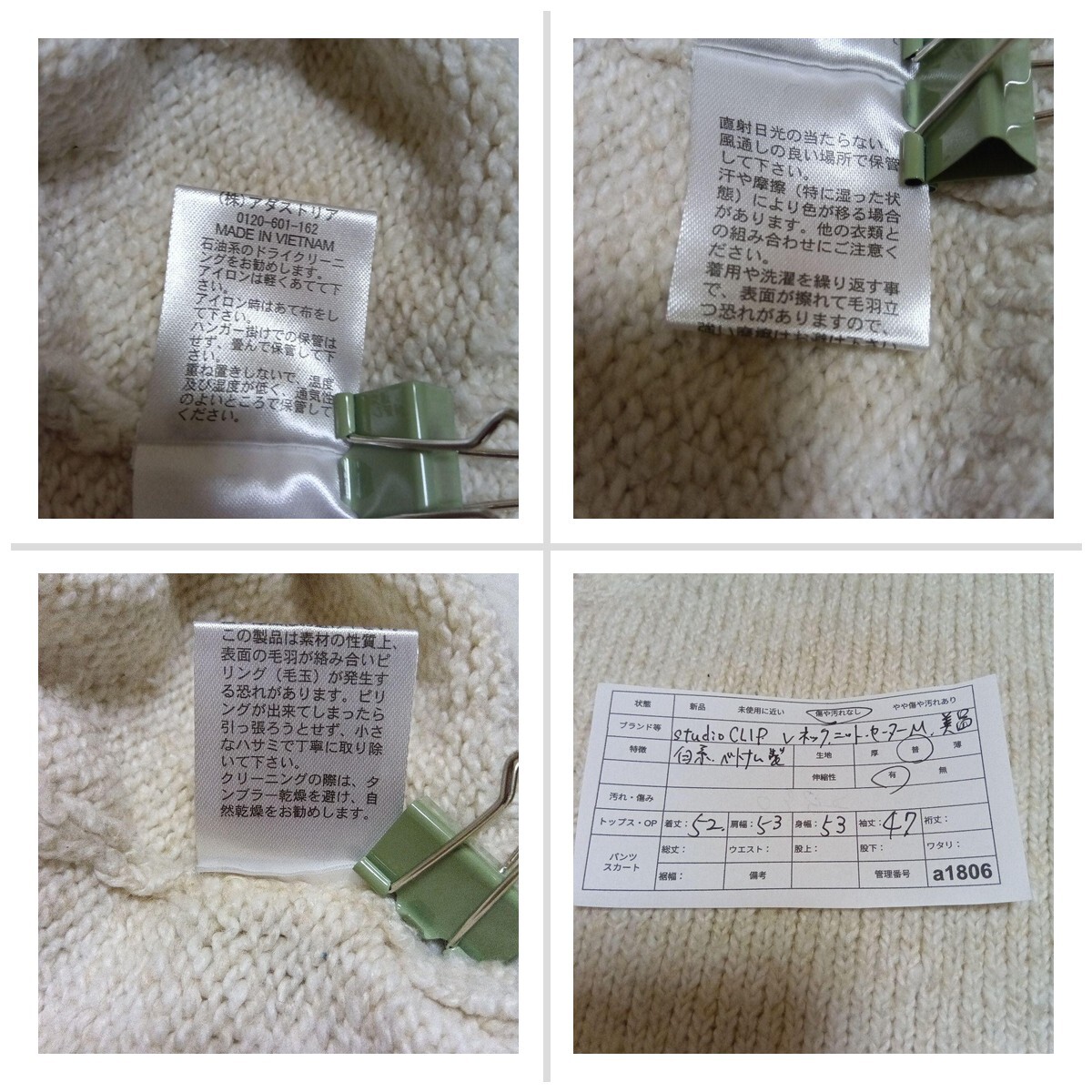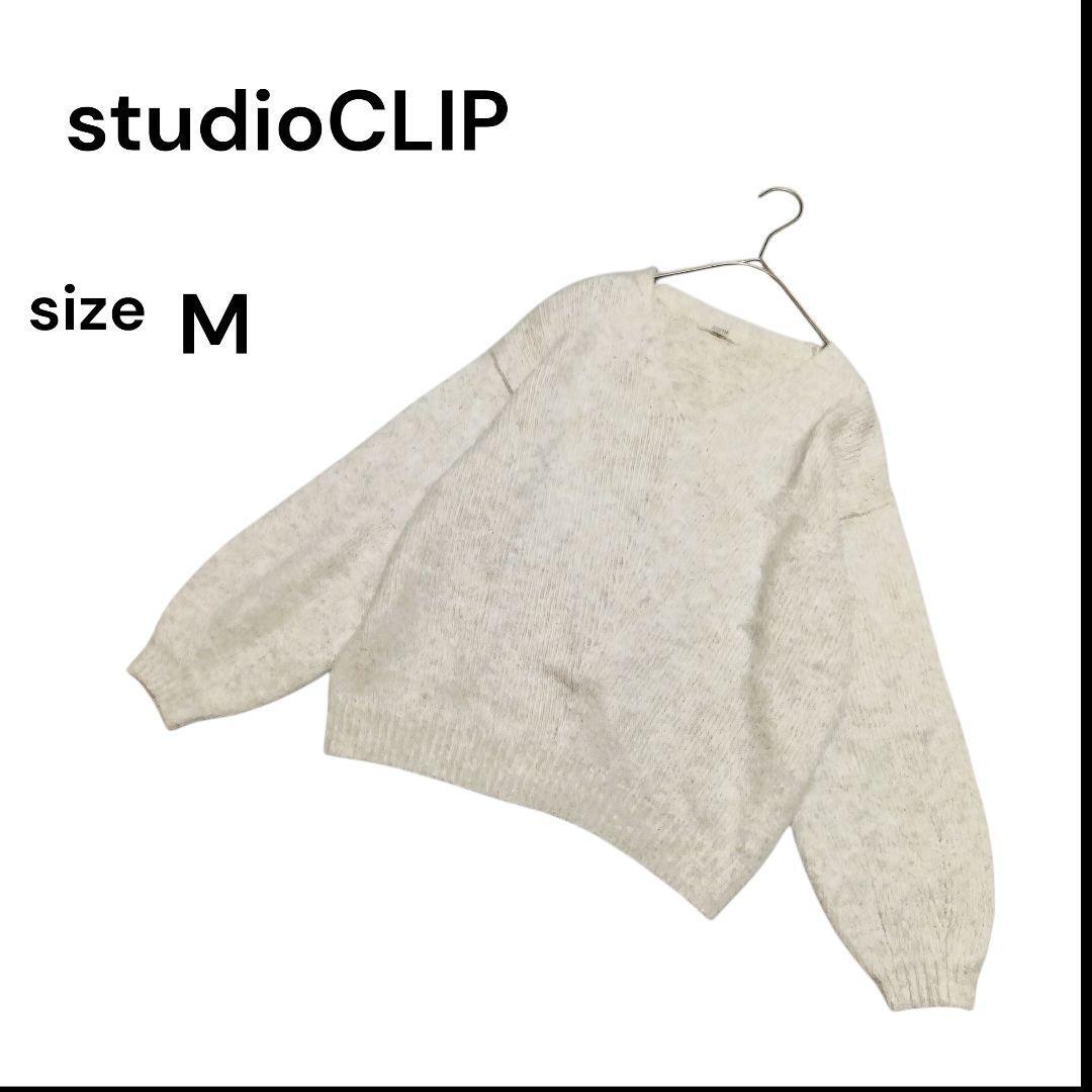 スタジオクリップ VネックニットセーターM 白系 ベトナム製 11339F