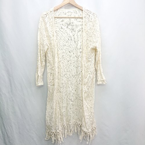 ◇ ⊂ Φ niko and … ニコアンド レース フリンジ付き 七分袖 カーディガン サイズ表記なし オフホワイト レディース E
