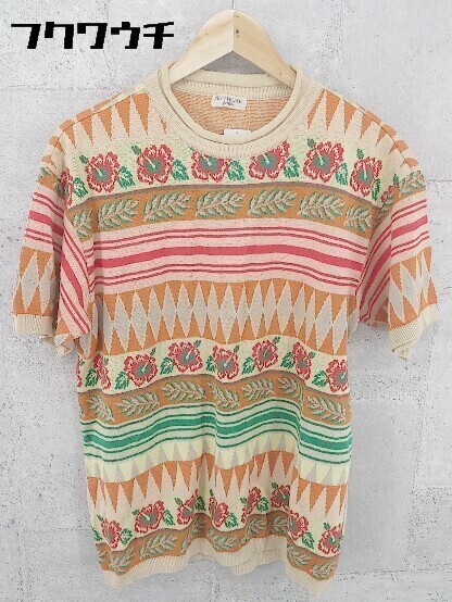 ◇ peyton place ペイトンプレイス コットン ニット 五分袖 セーター F ベージュ マルチ * 1002800233045
