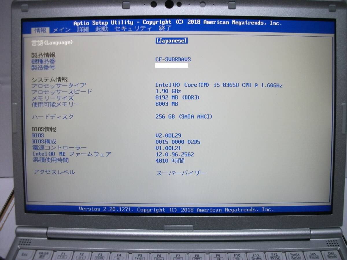 Win11 Panasonic Let's note CF-SV8RDAVS/Corei5/8GBメモリ+SSD256GB/マルチ/Office2021(509)