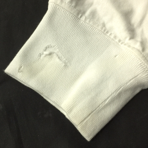 | 表面: | スレ・毛羽立ち・汚れ・シミ・黄ばみ・袖口破れ・繊維付着・シワがございます。 |