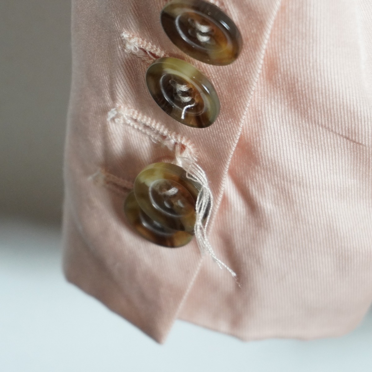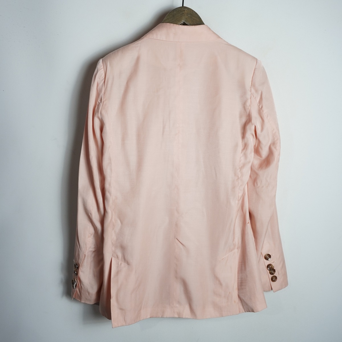 鮮やかなサーモンピンクカラーのテーラードジャケットです。
