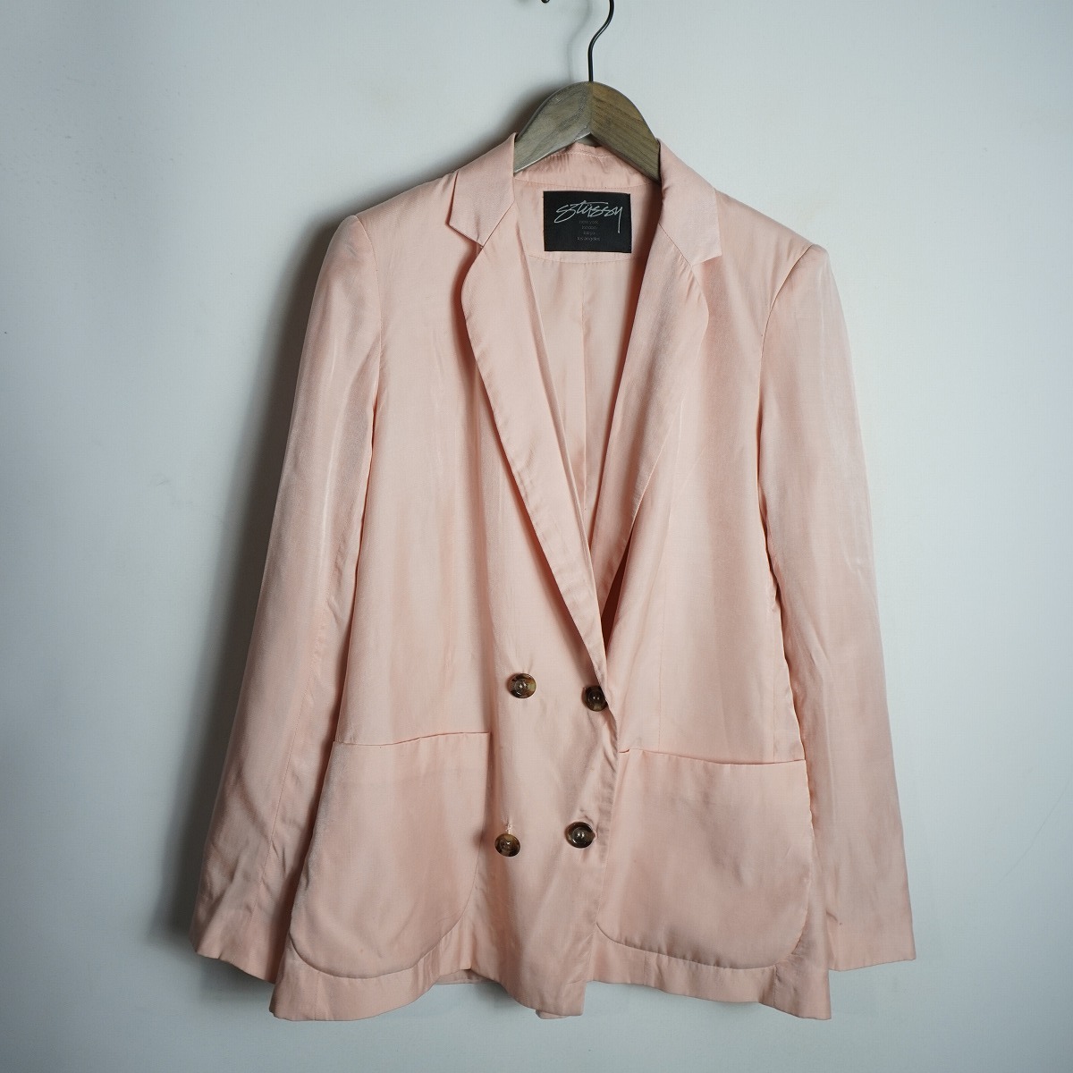 正規 Stussy ステューシー テーラード ジャケット ブレザー レーヨン混 長袖 825004 サーモン ピンク サイズ S 本物です。