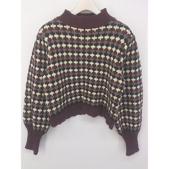 ◇ ems excite エムズエキサイト ショート丈 ニット セーター サイズF ボルドー系 レディース P