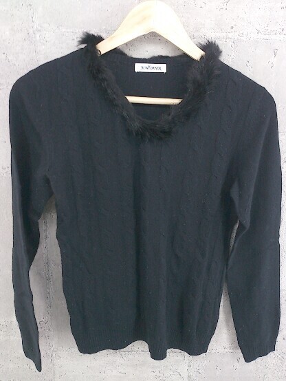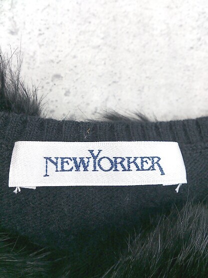 ◇ NEWYORKER ニューヨーカー 長袖 ニット セーター ファー付 L ブラック *