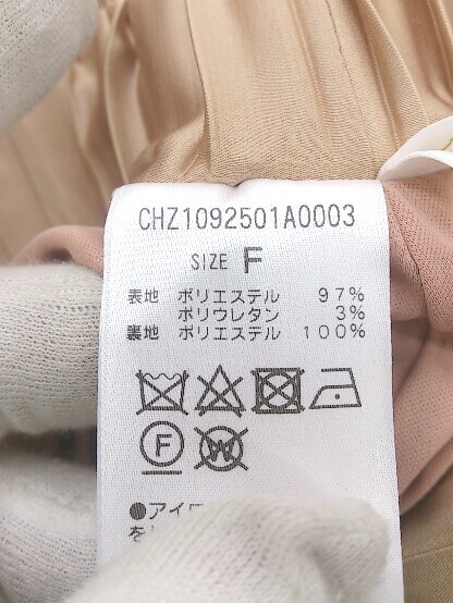 ◇ who's who Chico フーズフーチコ サテン調 ウエストゴム ロング プリーツ スカート サイズF ベージュ系 レディース E
